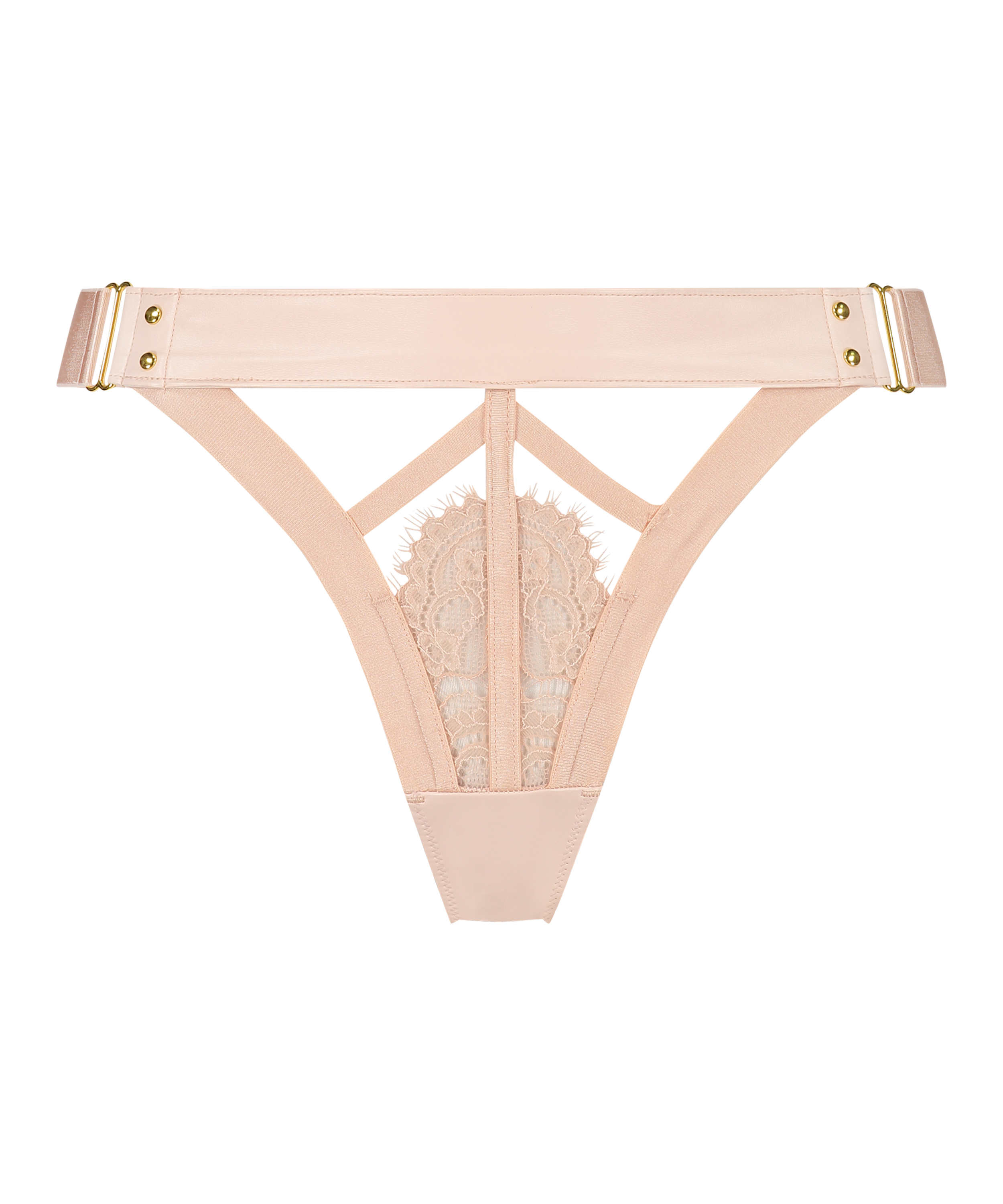 Klar for en spennende kveld? Da er denne g-strengen perfekt! Den har en lærlook og er delvis dekket av blonder. Foran er det cut-out-detaljer. Kombiner denne g-strengen med den matchende BH-en fra Private-kolleksjonen vår!