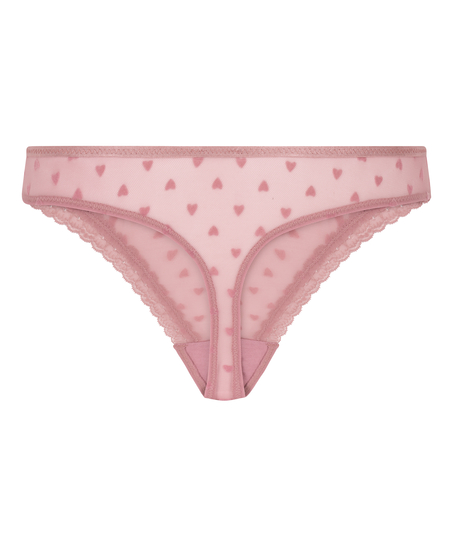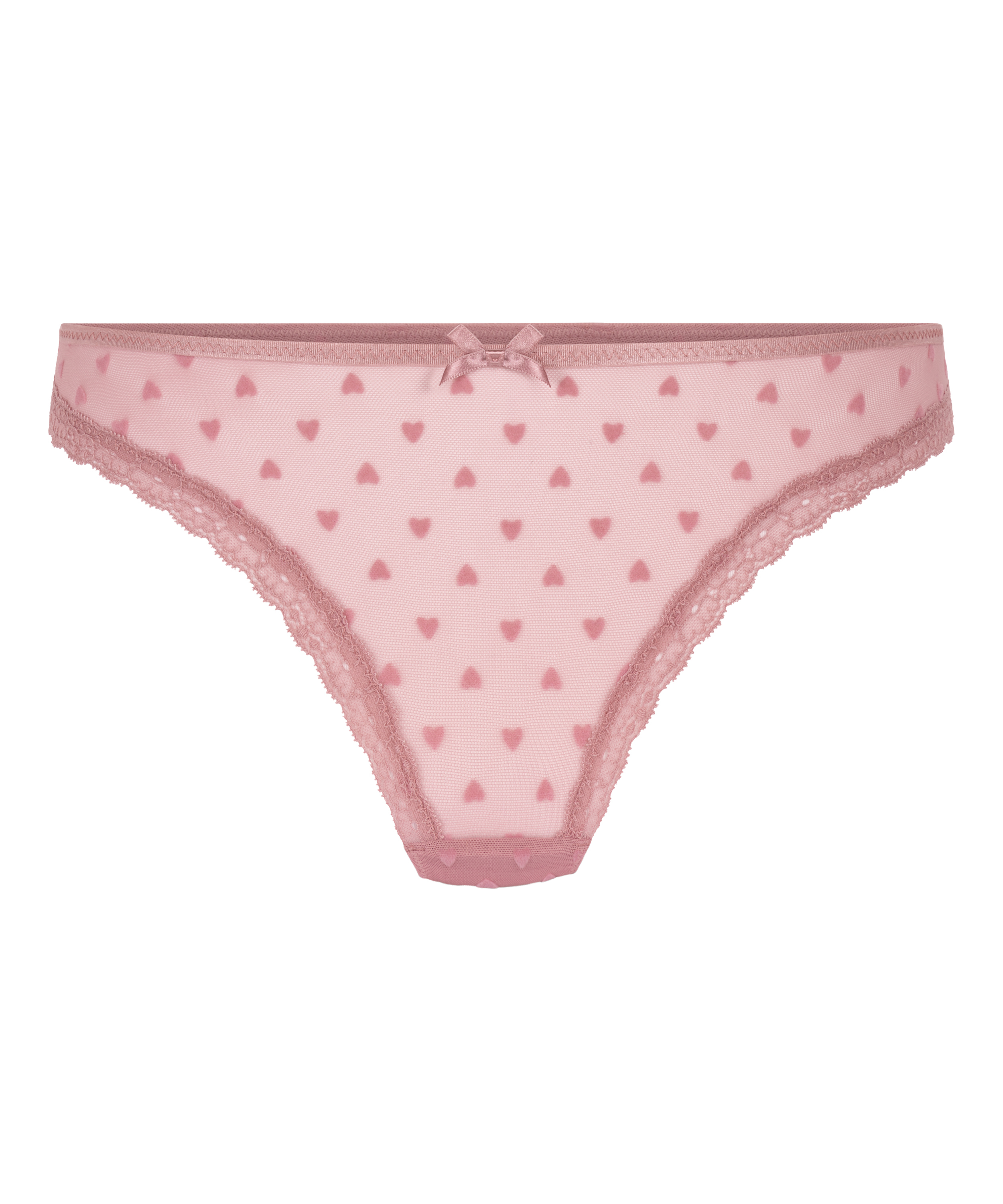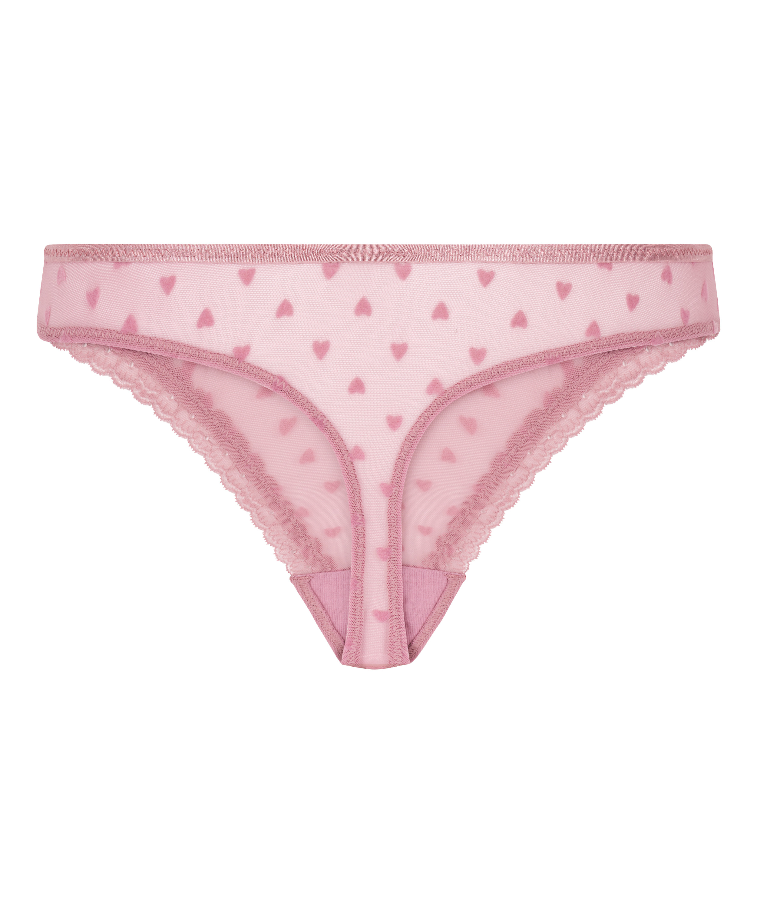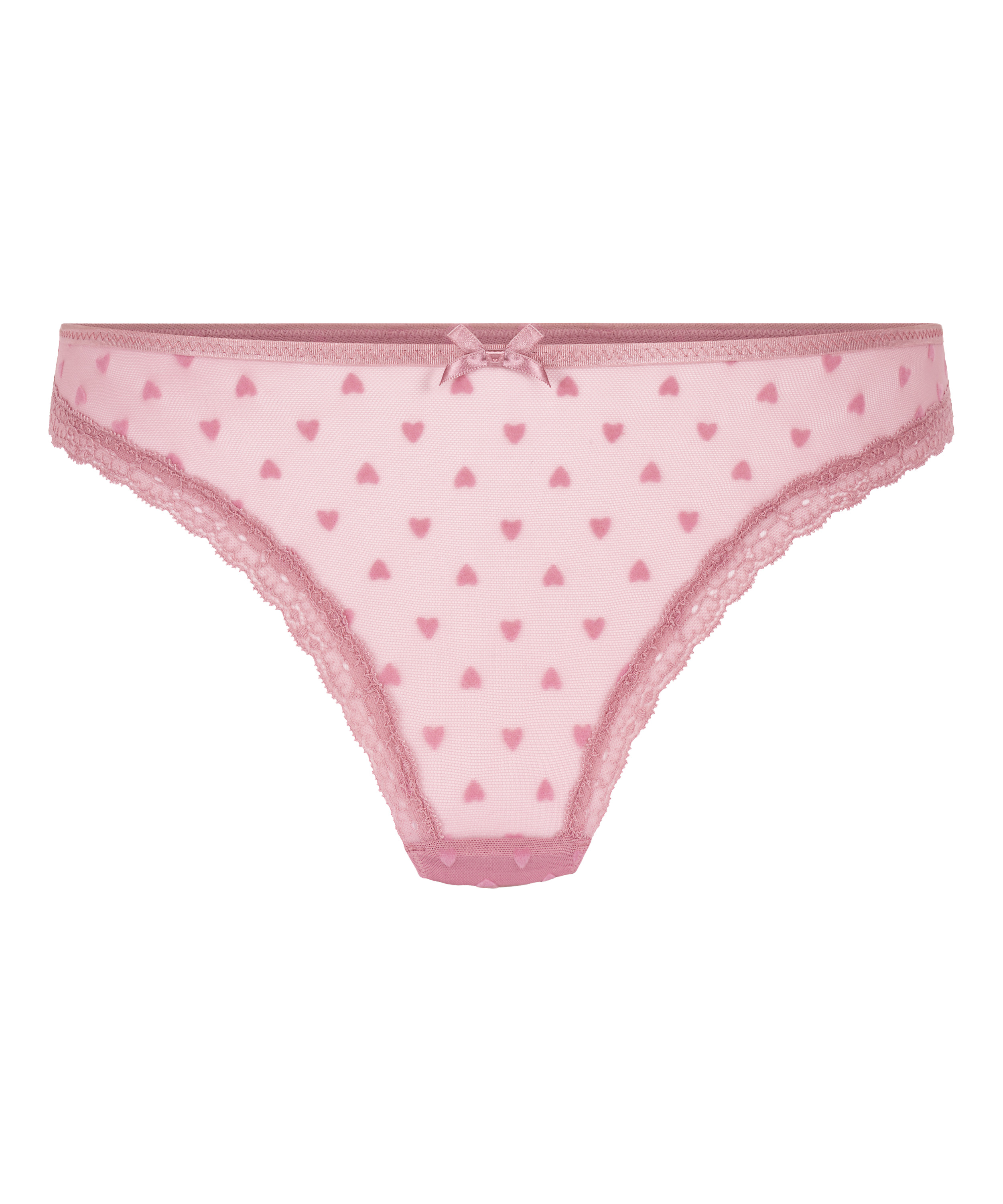 Føl deg komfortabel i denne nydelige g-strengen. G-strengen har en blondekant og detaljer med fløyelshjerter. Kombiner med yndlings-BH-en din for å gjøre settet perfekt.
