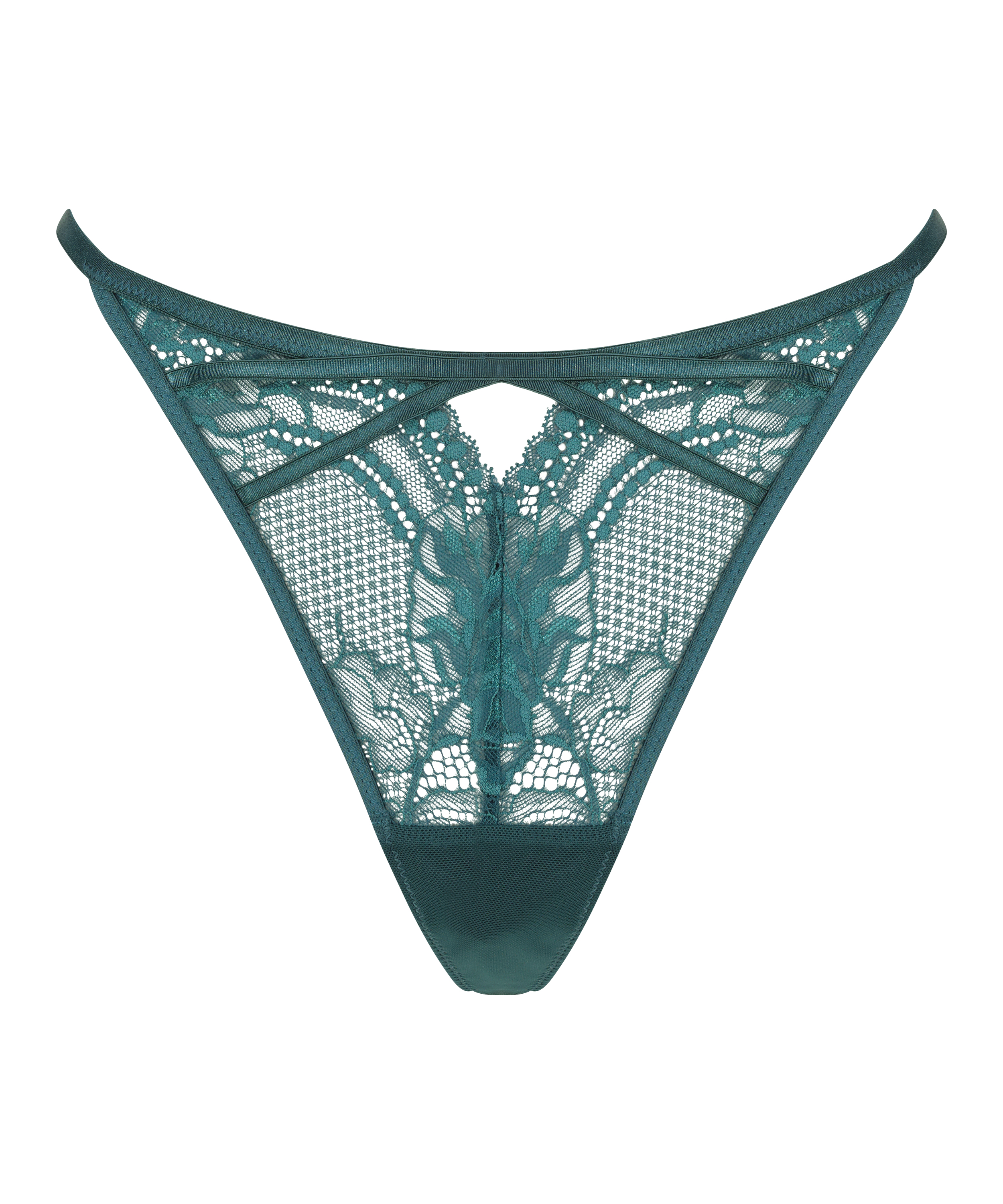 Denne thongen er akkurat det du trenger for å være komfortabel og søt samtidig! Mesh-stoffet foran, gir en semi-transparent look med broderi. Gjennomført med sexy strappy detaljer foran. Området i skrittet er støttet av mykt stoff for mest mulig komfort. Gjør settet komplett med en matchende BH!