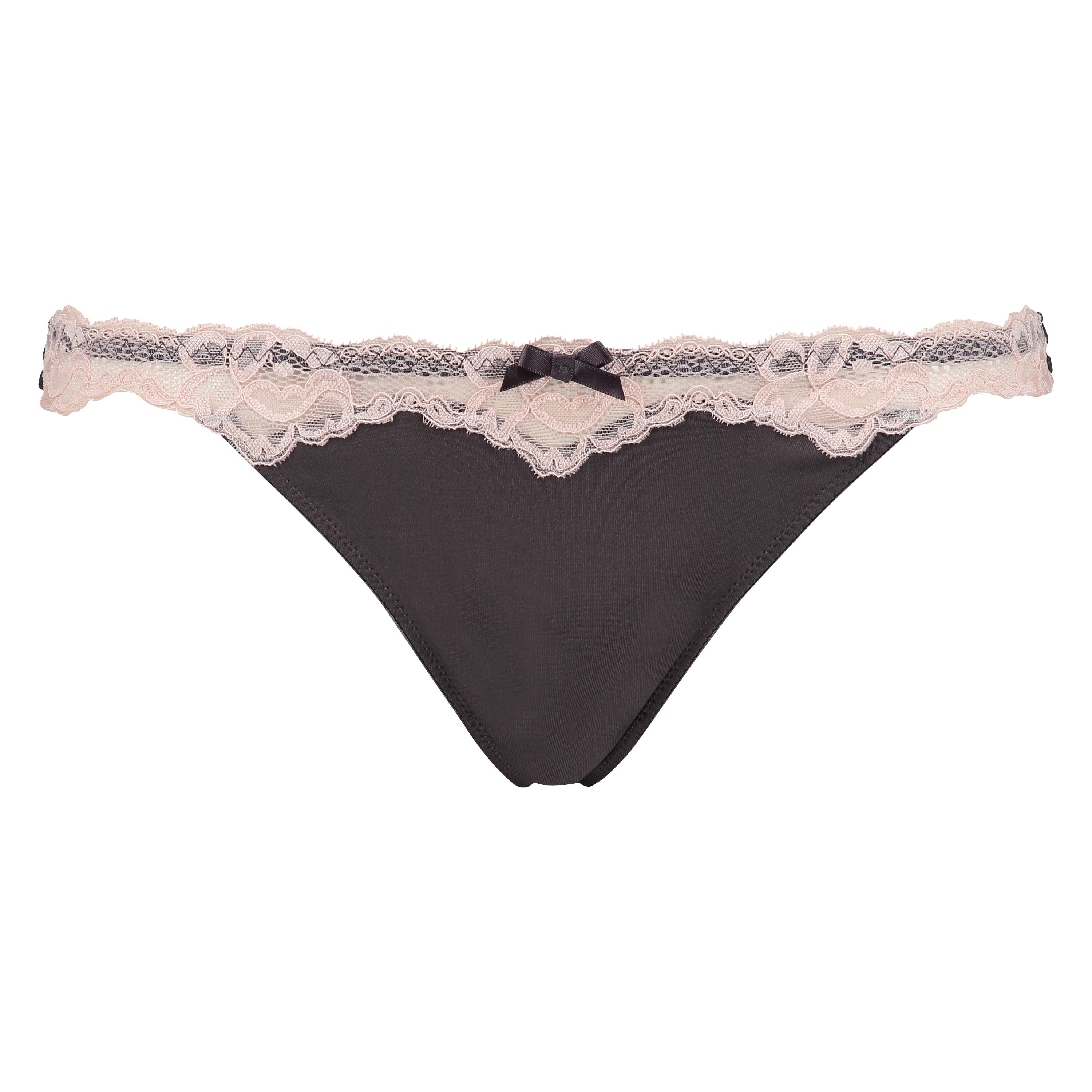 Bli med på blondebølgen! Denne veldig feminine thongen er utstyrt med halvt gjennomsiktig blondestoff.