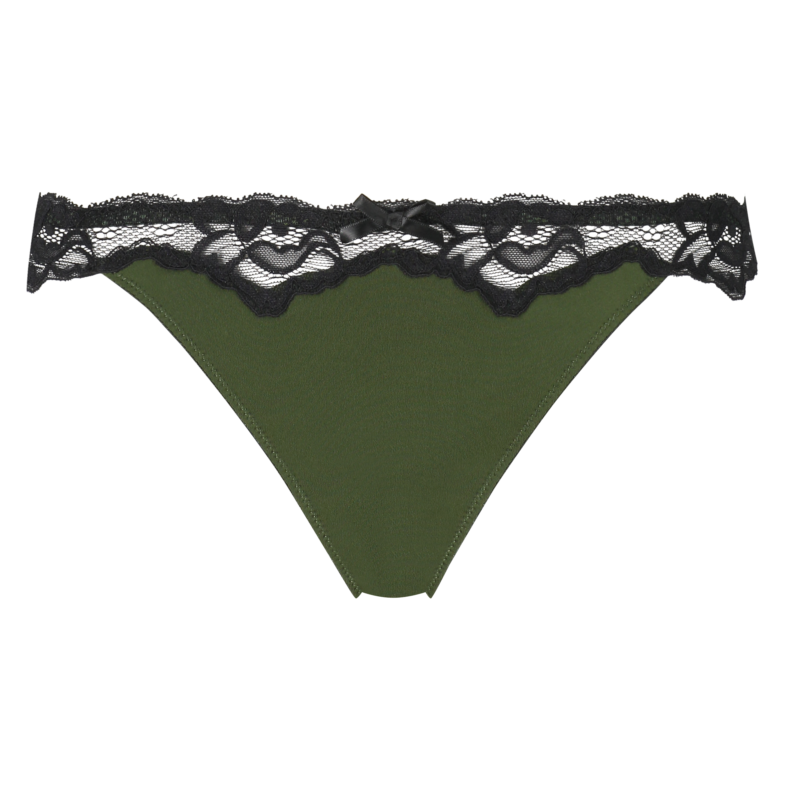 Bli med på blondebølgen! Denne veldig feminine thongen er utstyrt med halvt gjennomsiktig blondestoff.
