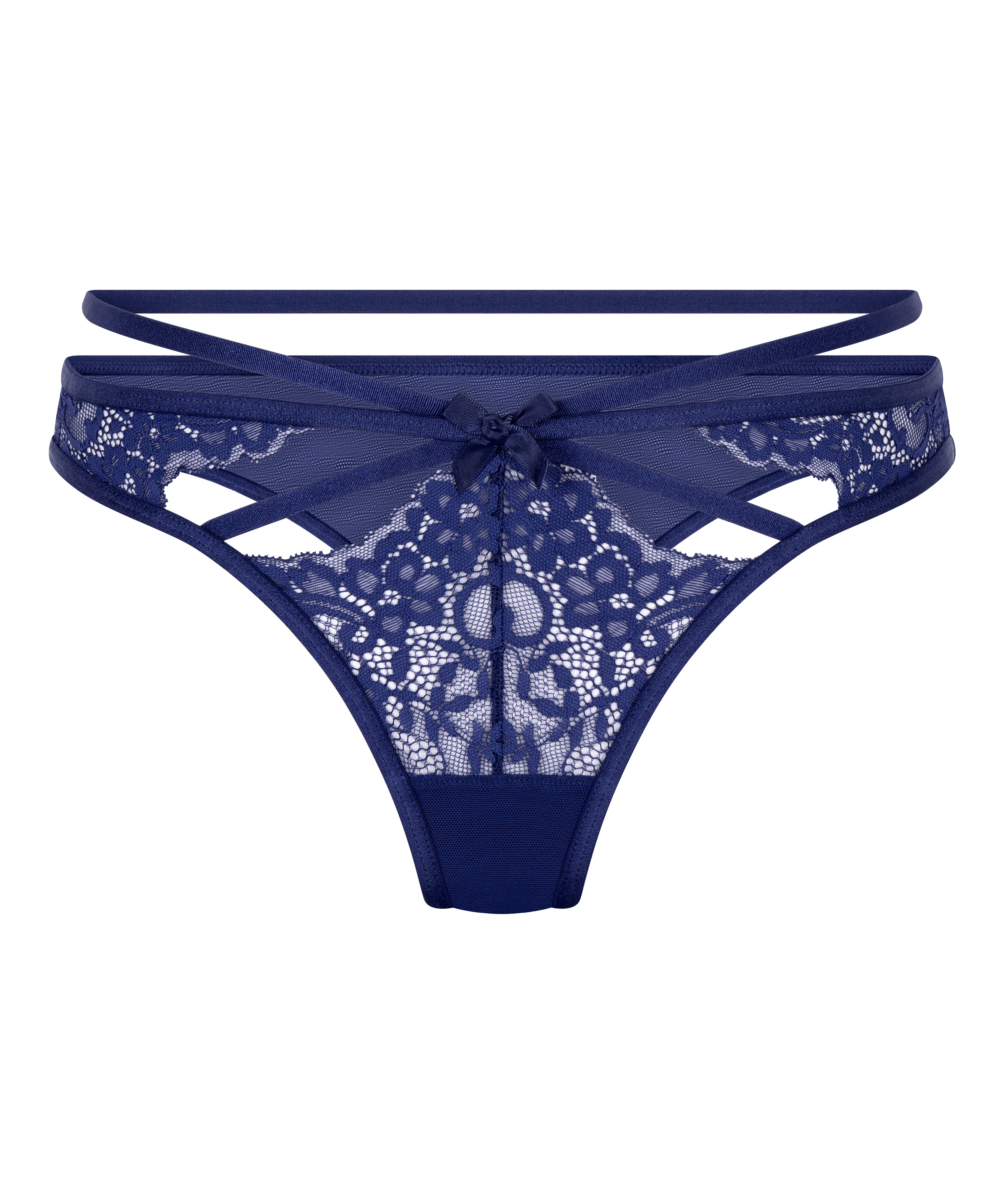 Føl deg uimotståelig i denne g-strengen. G-strengen har masse blonder og cut-out-detaljer. I tillegg har trusen også strappy detaljer. Kombiner med en matchende BH.