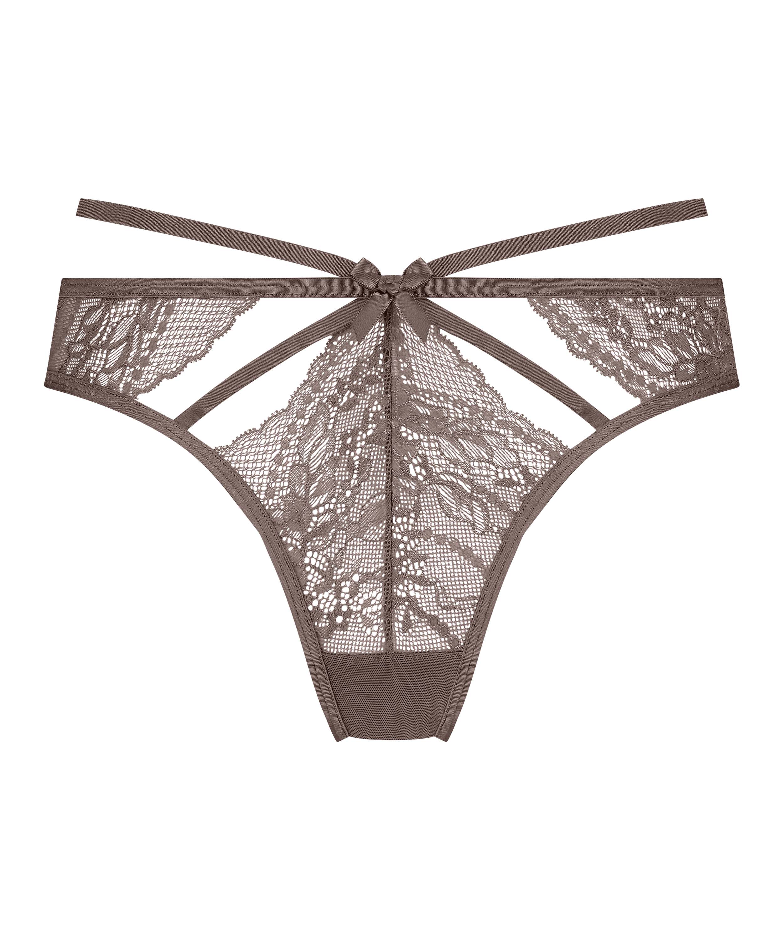 Føl deg uimotståelig i denne g-strengen. G-strengen har masse blonder og cut-out-detaljer. I tillegg har trusen også strappy detaljer. Kombiner med en matchende BH.