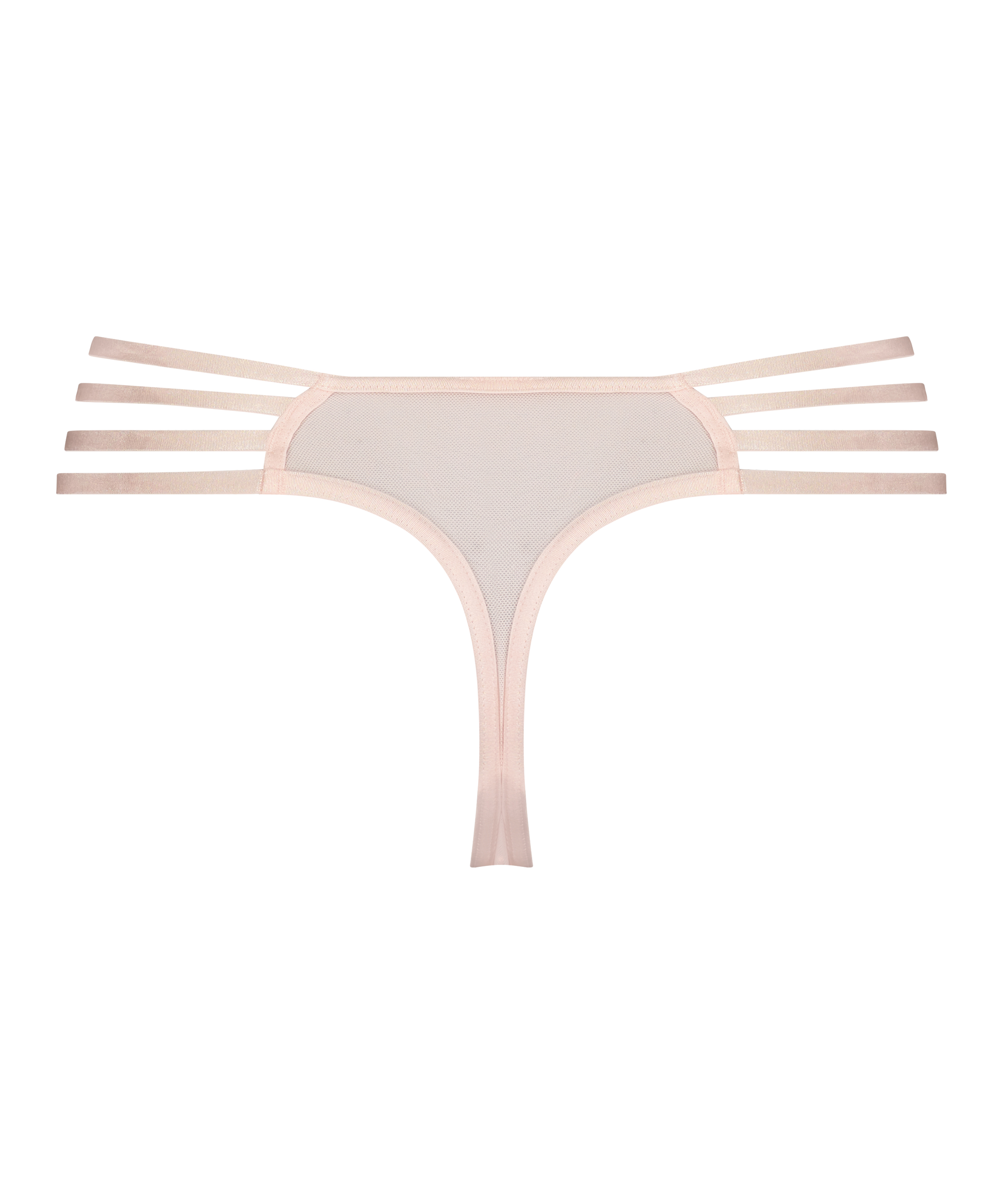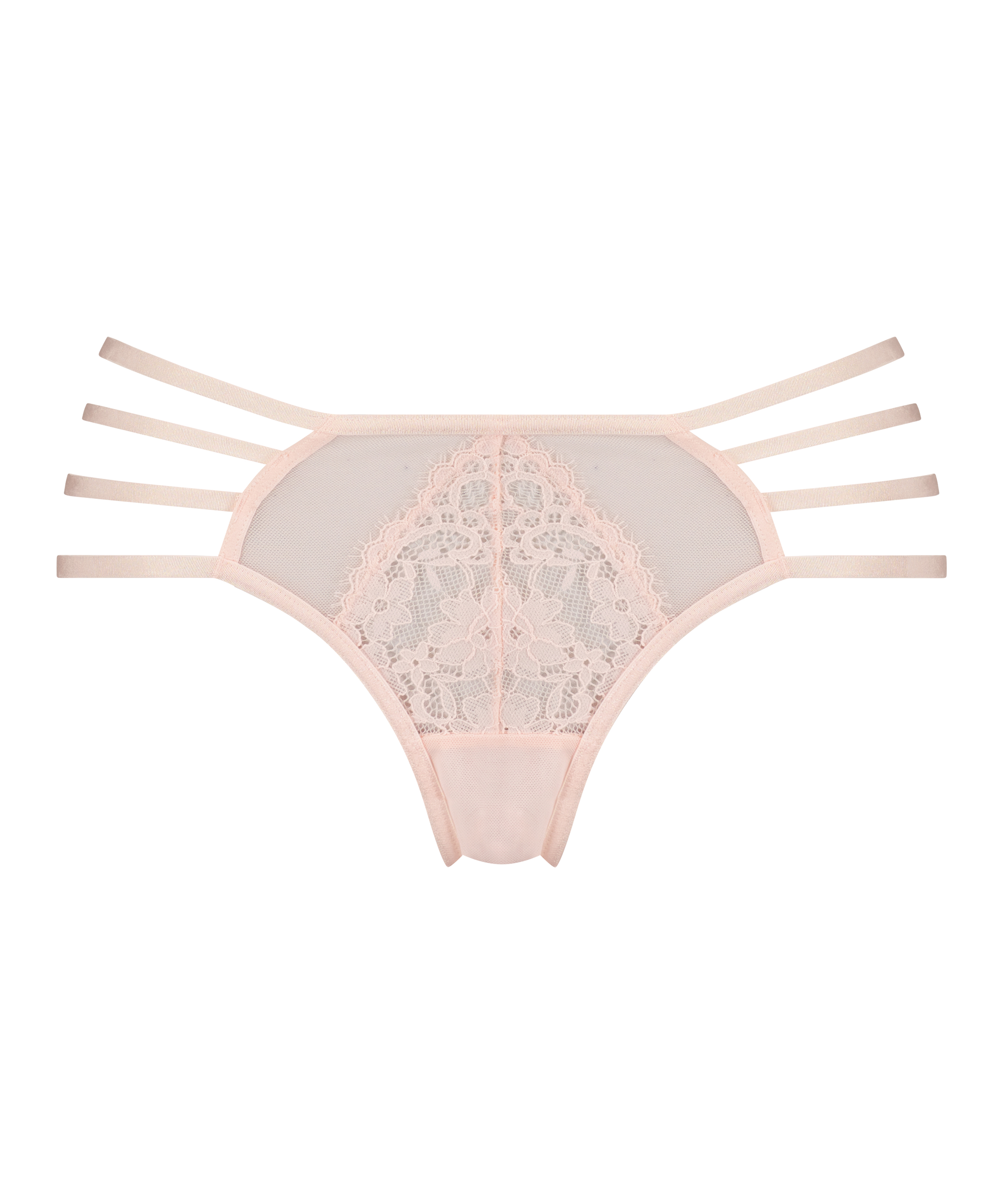 Føl deg sexy i denne strengen på grunn av blondene og de strappy detaljene. Strengen har en søt sløyfe foran og viser bare litt mer hud på hoftene.