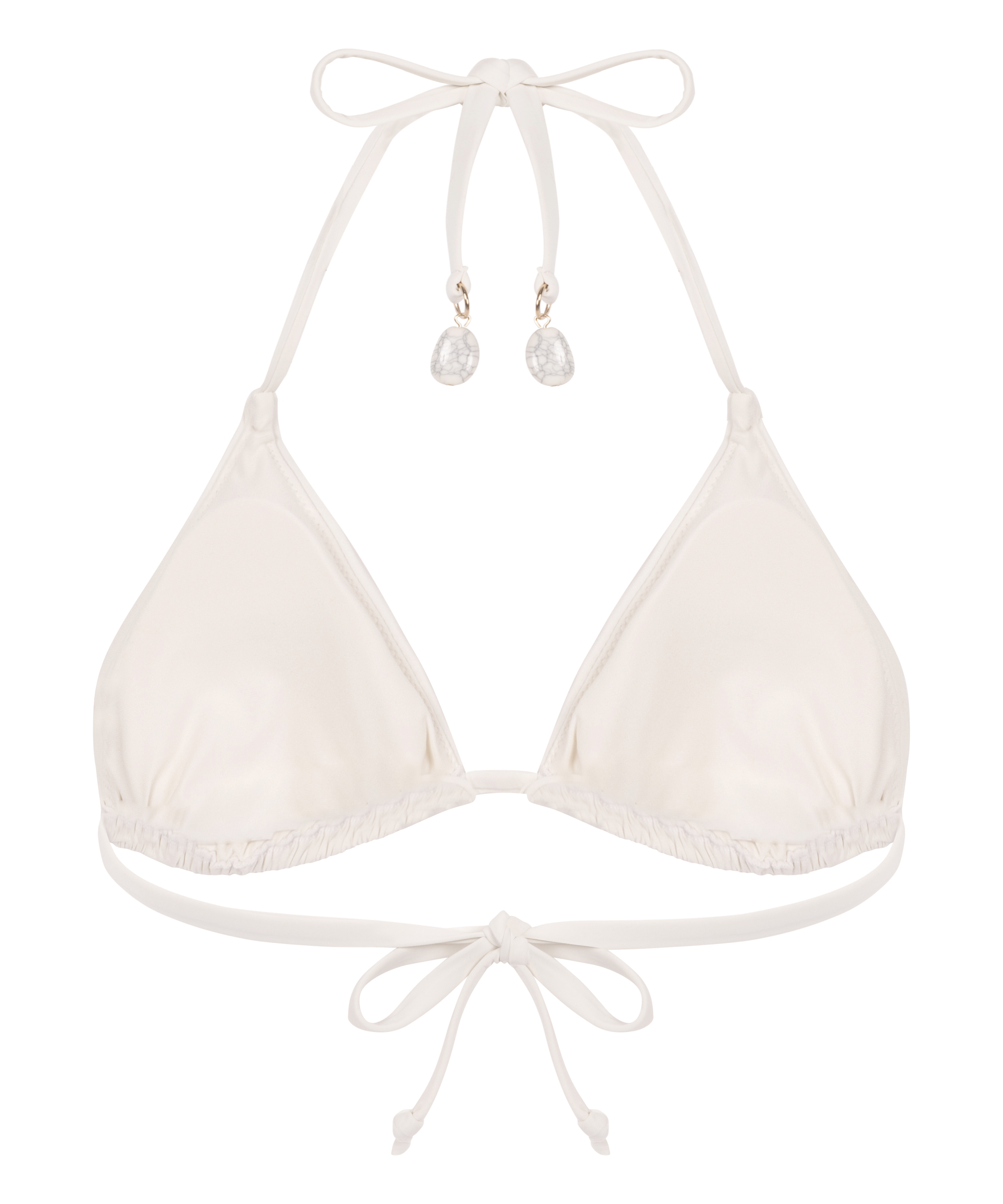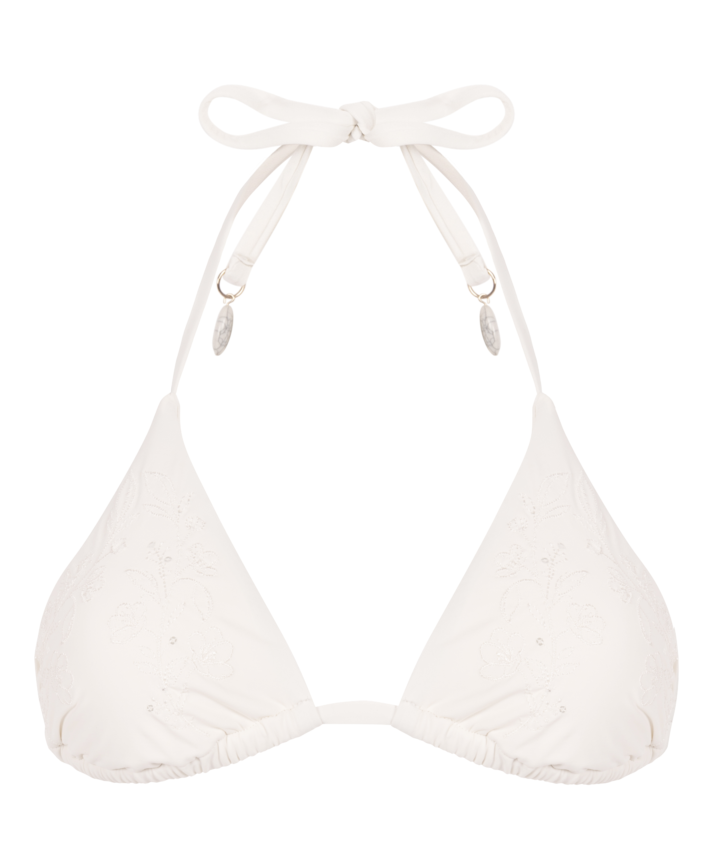 Løft badetøyet ditt med denne delikate trekanttoppen, designet for en smigrende og uanstrengt passform. De glitrende blomsterdetaljene gir et elegant preg og fanger lyset på en vakker måte. Kombiner den med matchende underdeler for en koordinert og iøynefallende strandlook! Våre trekant-bikinioverdeler er fullt justerbare med knyting i nakken og på ryggen, slik at du kan velge ønsket dekning. Ønsker du mer dekning, anbefaler vi å gå opp én størrelse.