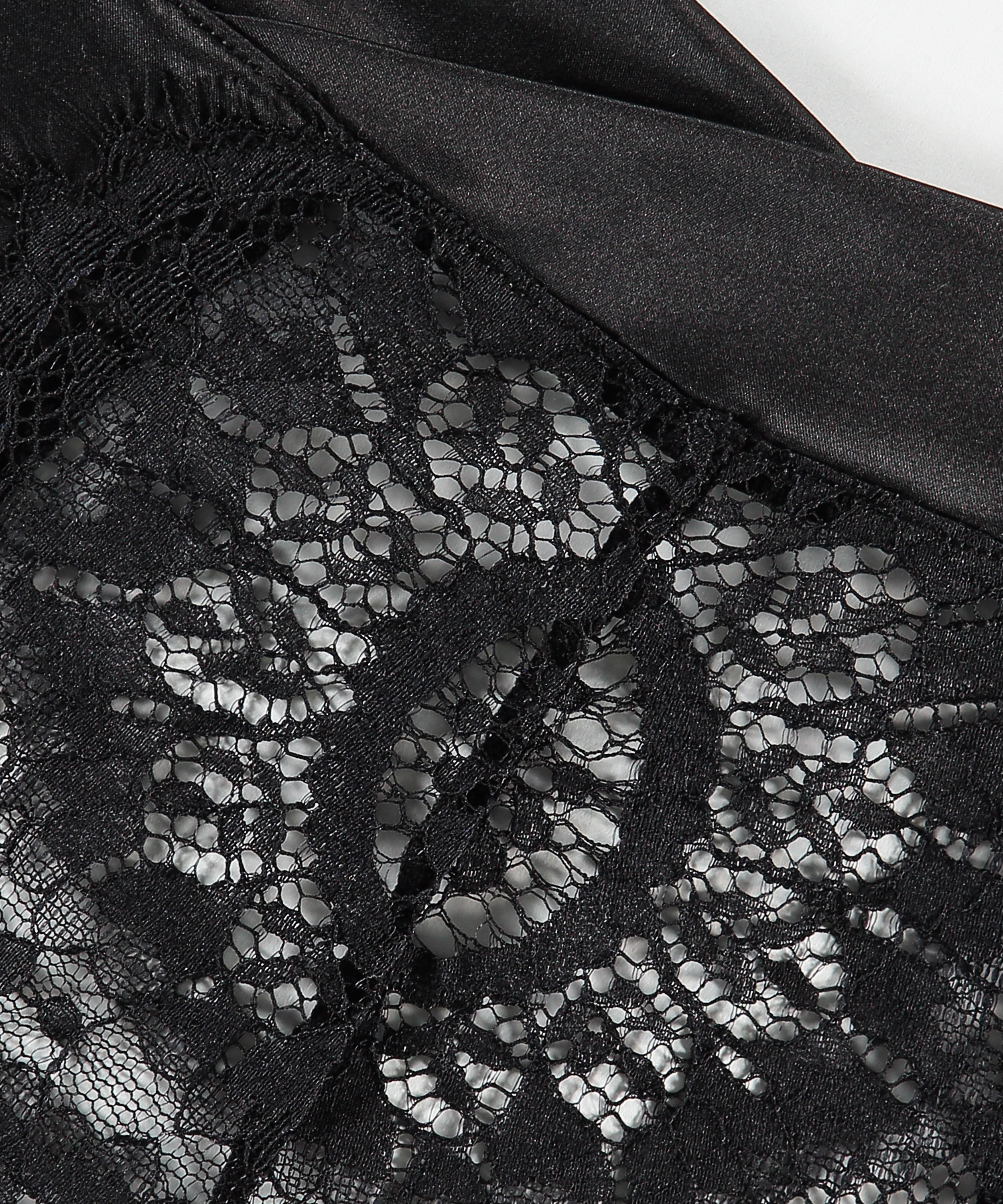 Føl deg komfortabel i denne høye g-strengen! G-strengen har høy skjæring, og dermed ligger fokus på bena dine. G-strengen er nesten fullt og helt av blonder. Kombiner med matchende BH-er fra Noir-kolleksjonen for å gjøre settet ditt komplett!