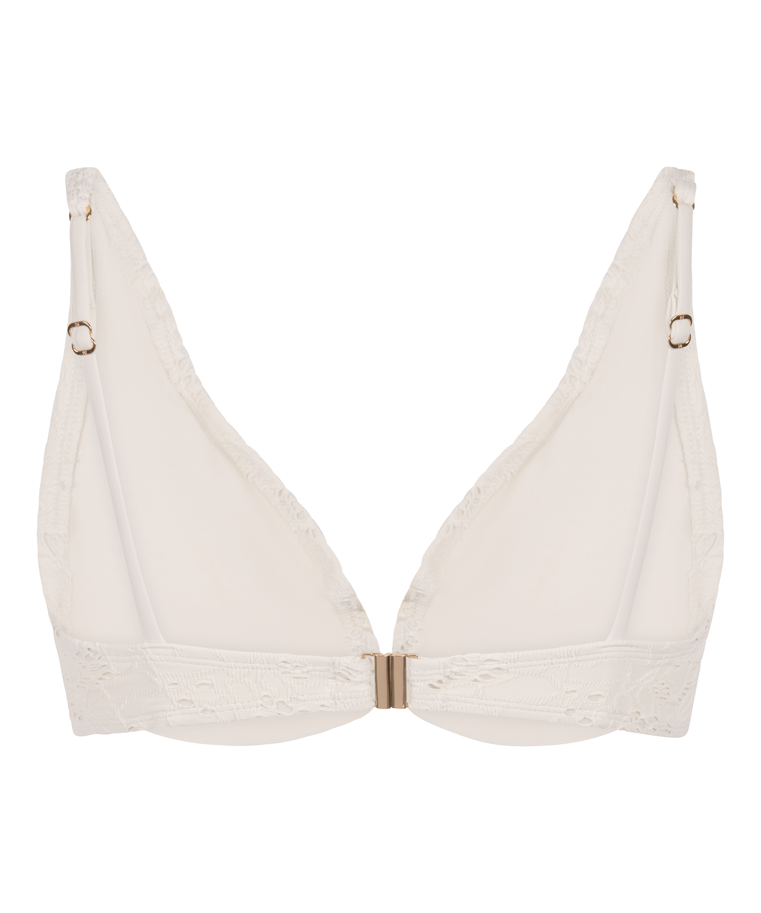 Denne heklede, upolstrede BH-en med bøyler kombinerer håndverksmessig sjarm med et snev av eleganse. Med justerbare skulderstropper, en sikker klipselukking bak og en gulldetalj foran, tilbyr den både stil og støtte. Perfekt for deg som elsker et delikat, men likevel statement-undertøy. Våre badetøy er utviklet med stoffer og fôr av høy kvalitet for å gi en støttende passform. Ønsker du en mer avslappet passform, anbefaler vi å gå opp én størrelse.