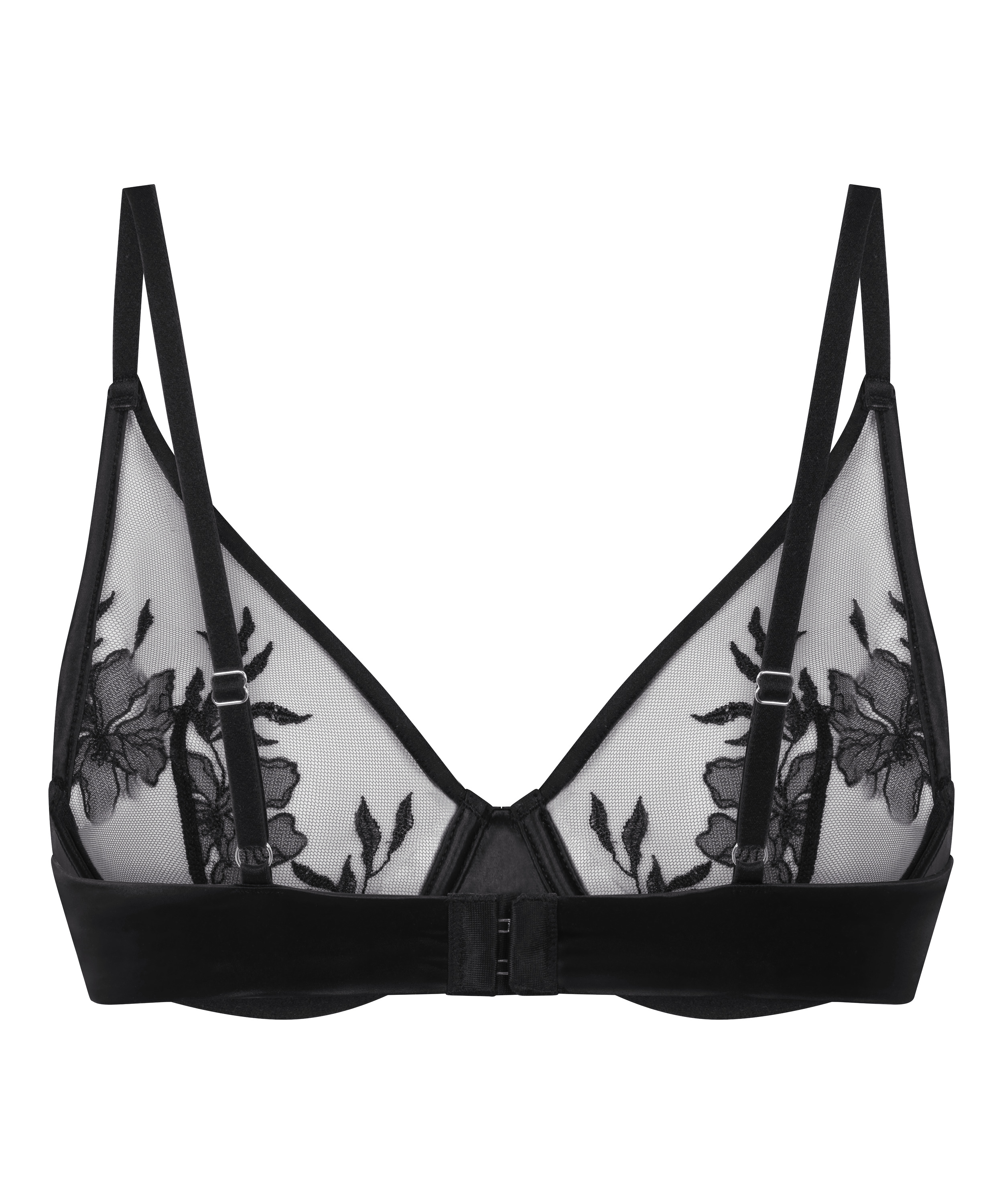 Denne BH-en er delikat og dristig, og designet for å fremheve din naturlige form med et snev av romantisk eleganse. Mesh-koppene er utsmykket med intrikate blomsterbroderier, som skaper et mykt, feminint utseende som er like vakkert som det ser ut. Den dype V-utringningen fremhever dekolletéen din, mens BH-koppene med bøyle gir diskret løft og støtte uten ekstra polstring. Kombiner med din favorittruse for en gjennomført look.