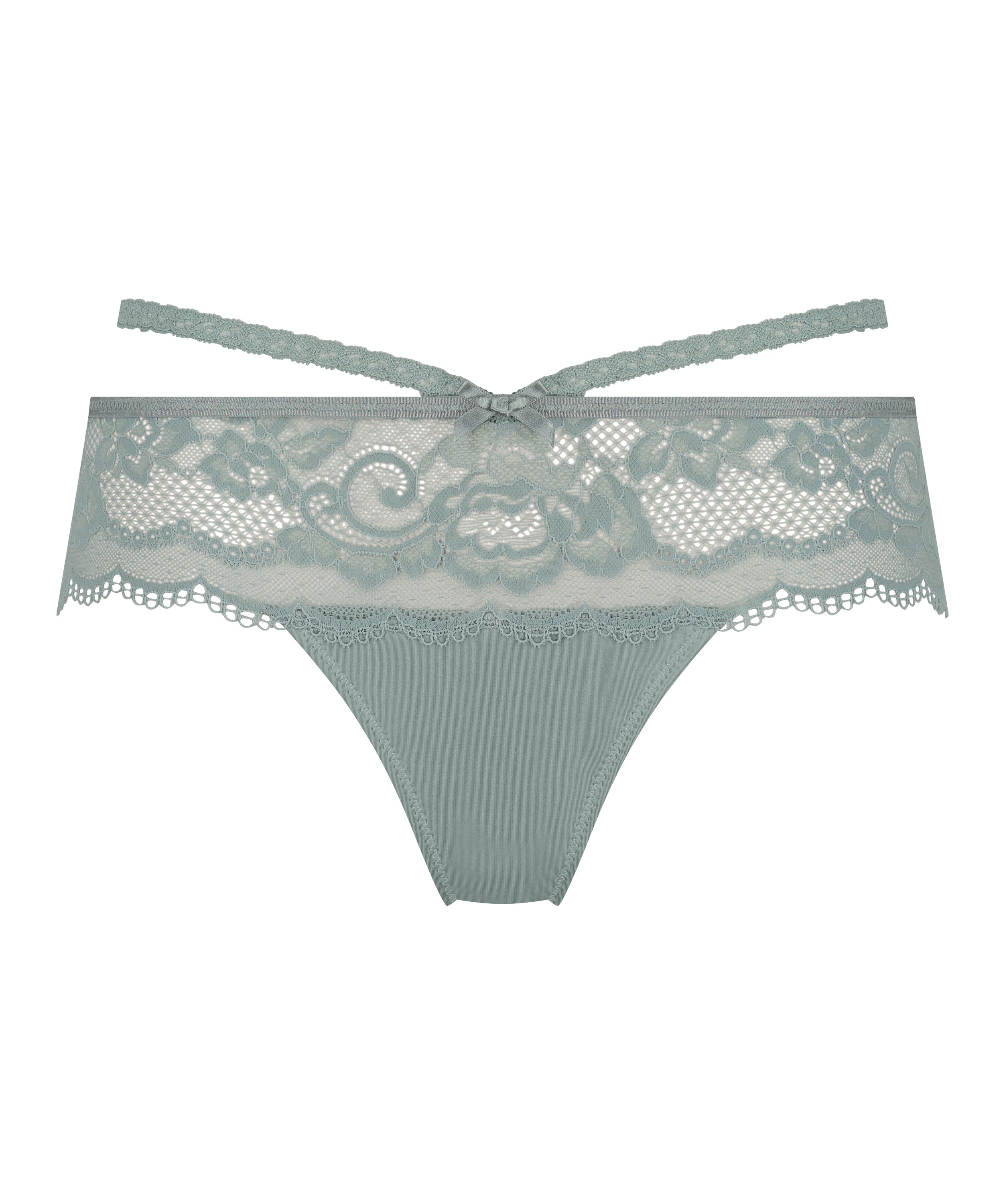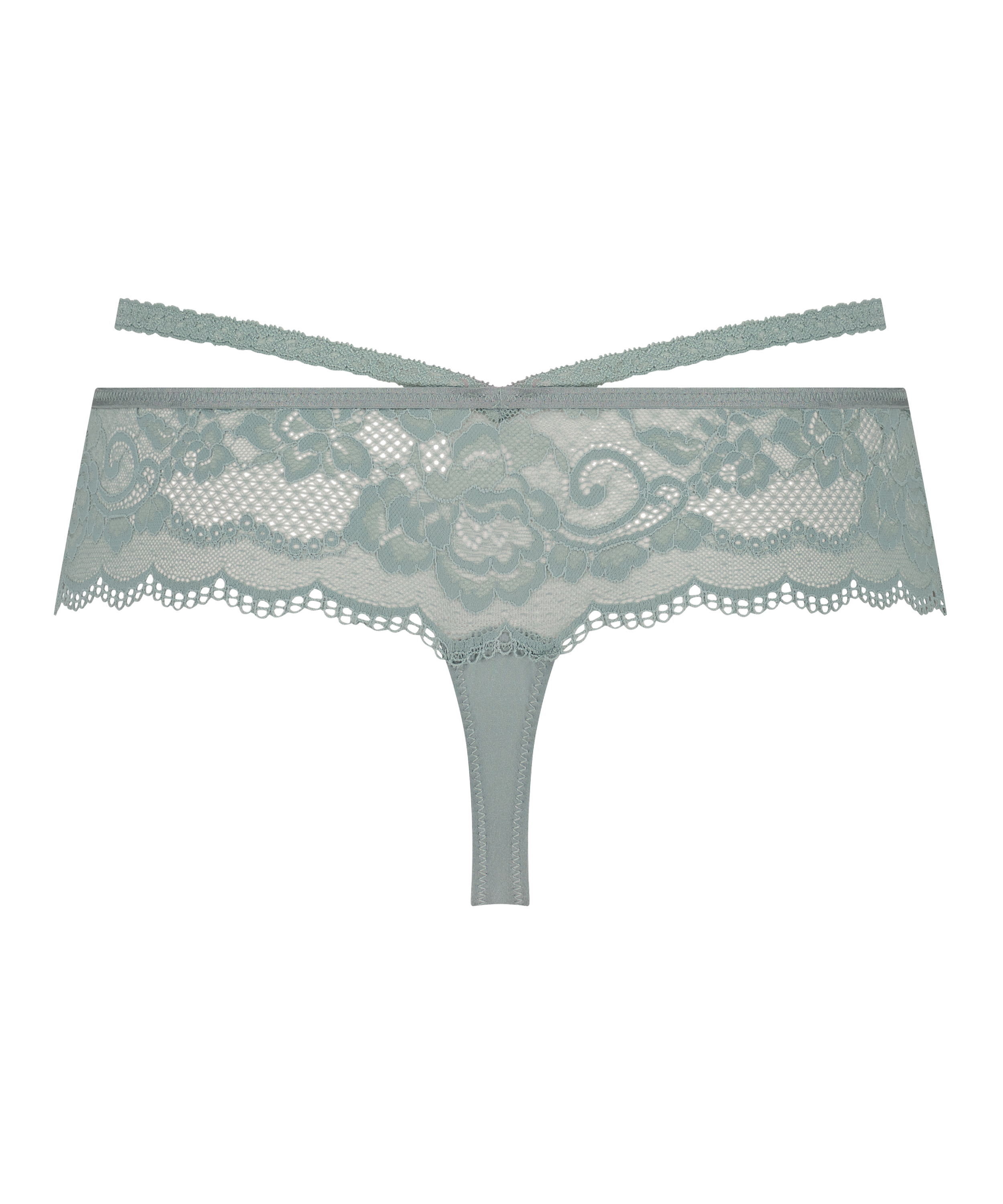 Hvor søt er ikke denne hipster-stringen! Trusen har en søt sløyfe foran og er for en del laget av blonder.Kombiner med din favoritt-BH!