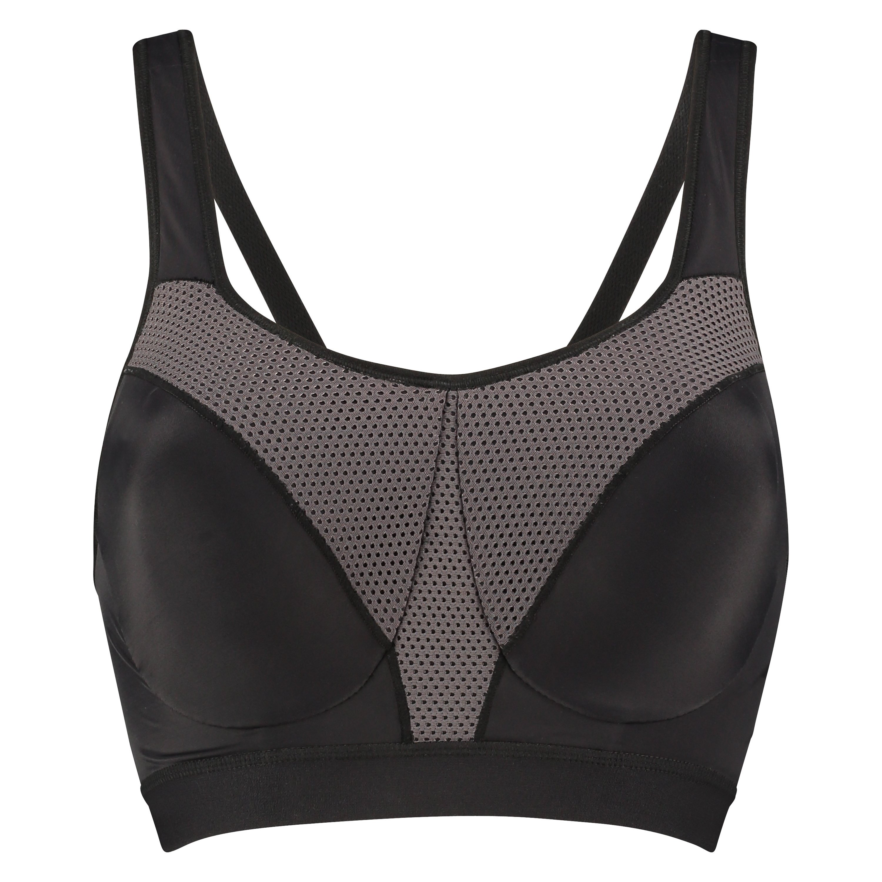 Denne sports-bh'en uten sprett er spesialdesignet for cupstørrelser C til F og gir deg maksimal støtte under intense treningsøkter. Det spesielle mesh-materialet holder kroppen din tørr og kjølig. Stroppene er samlet på baksiden for å gi ekstra støtte. Denne BH-en er egnet for store bryster under kraftige aktiviteter.