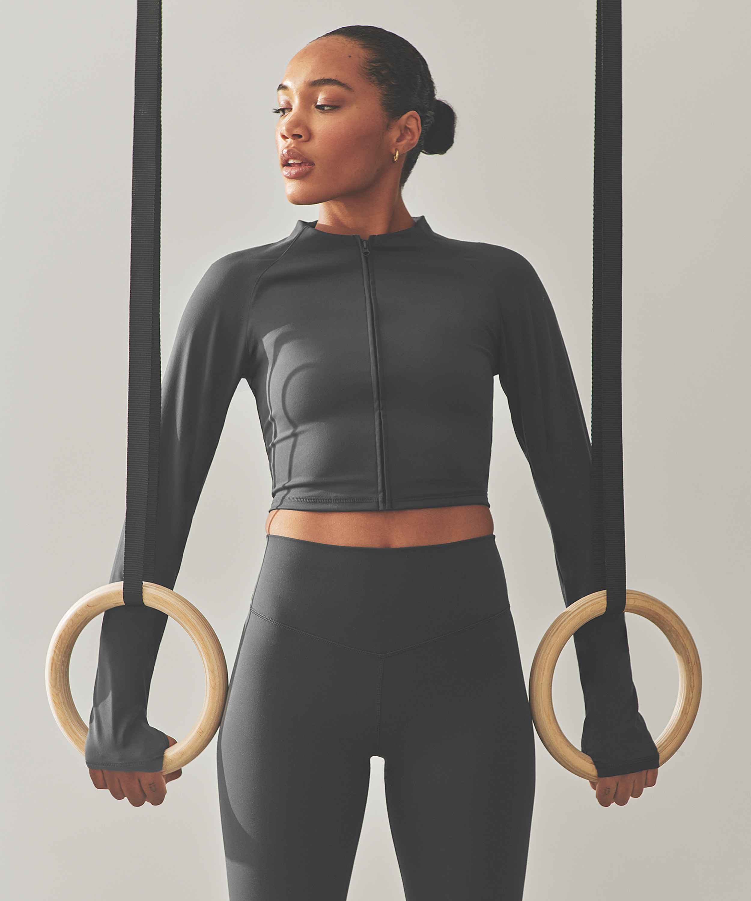 Denne jakken er perfekt for trening! Jakken har glidelås og hull i ermene til å stikke tommelen gjennom. Kombiner med matchende artikler.