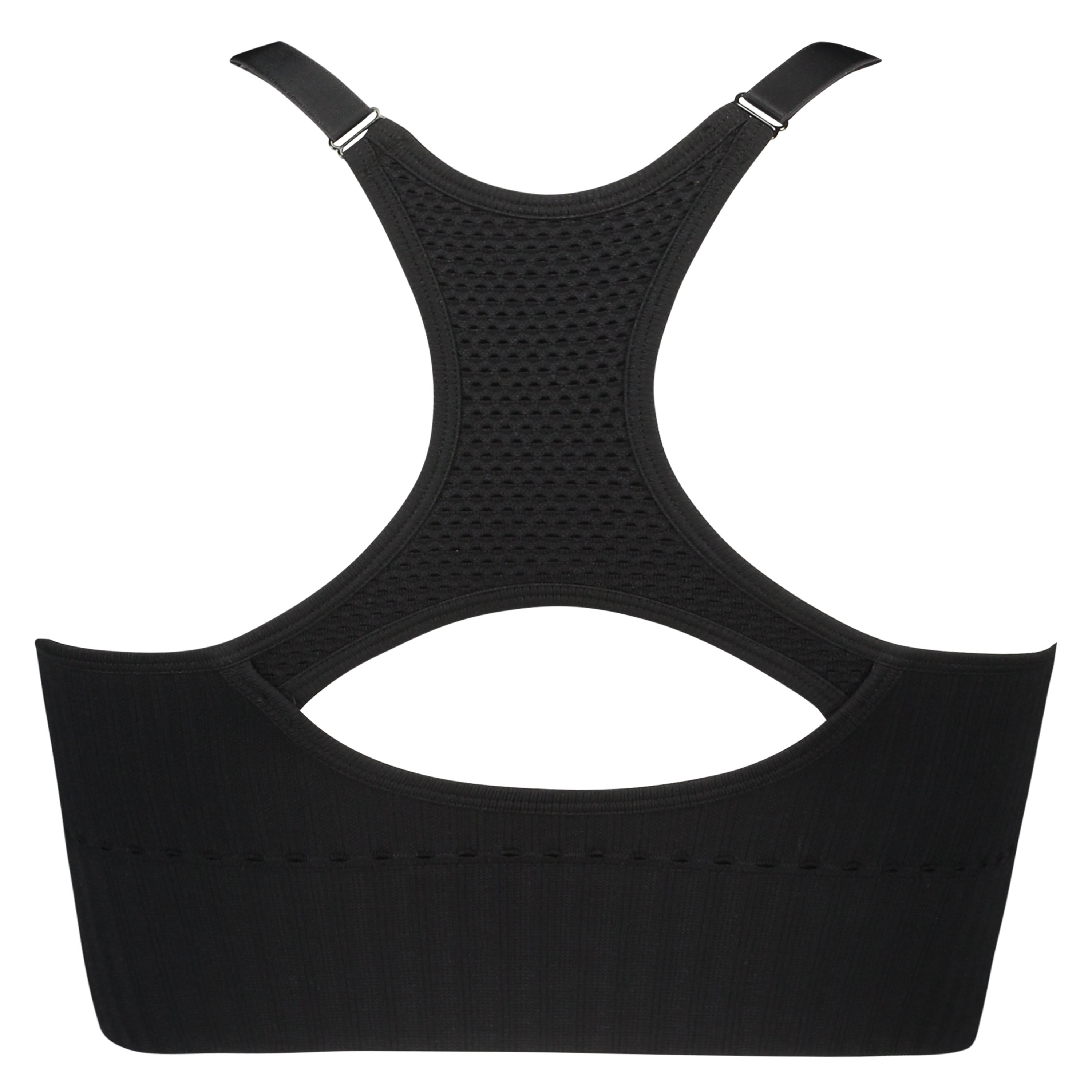 En sports-BH er en helt nødvendig ting i kolleksjonen din. Denne sports-BH-en har justerbare skulderstropper og et bredt bånd nederst for å gi ekstra styrke.