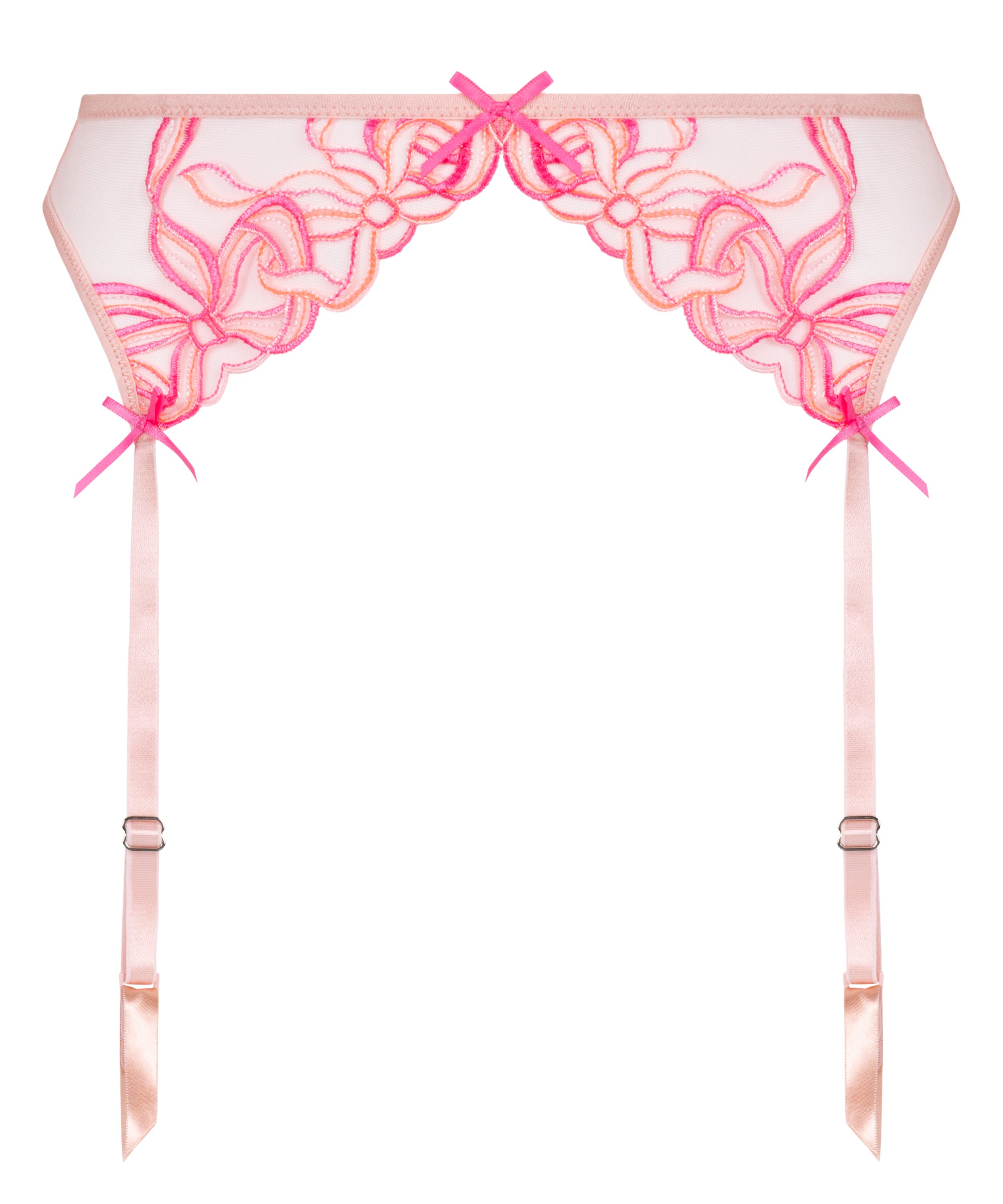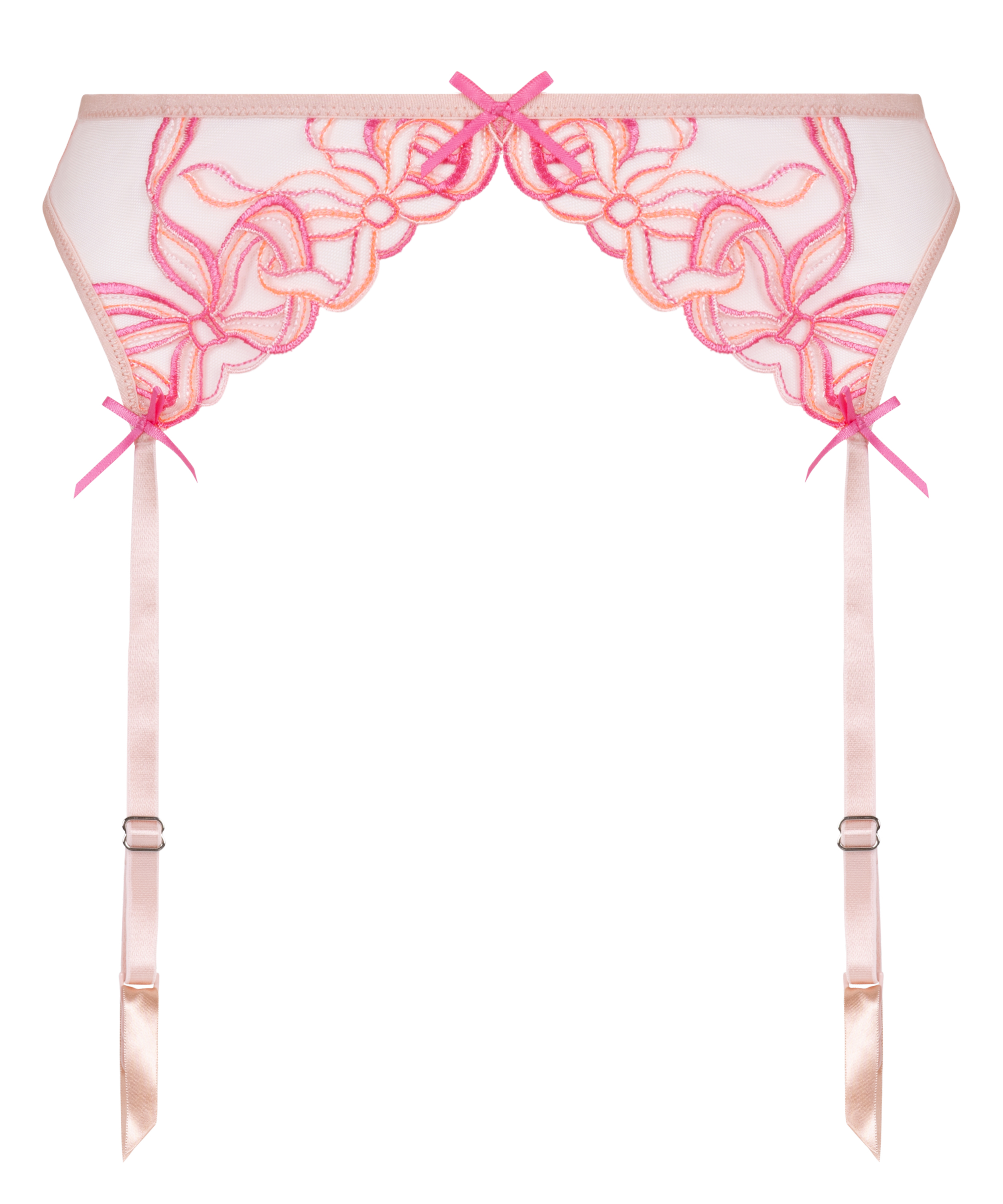 En strømpeholder med vakkert design med blomsterblonder! Dette er prikken over i-en til Beau-undertøyssettet ditt!