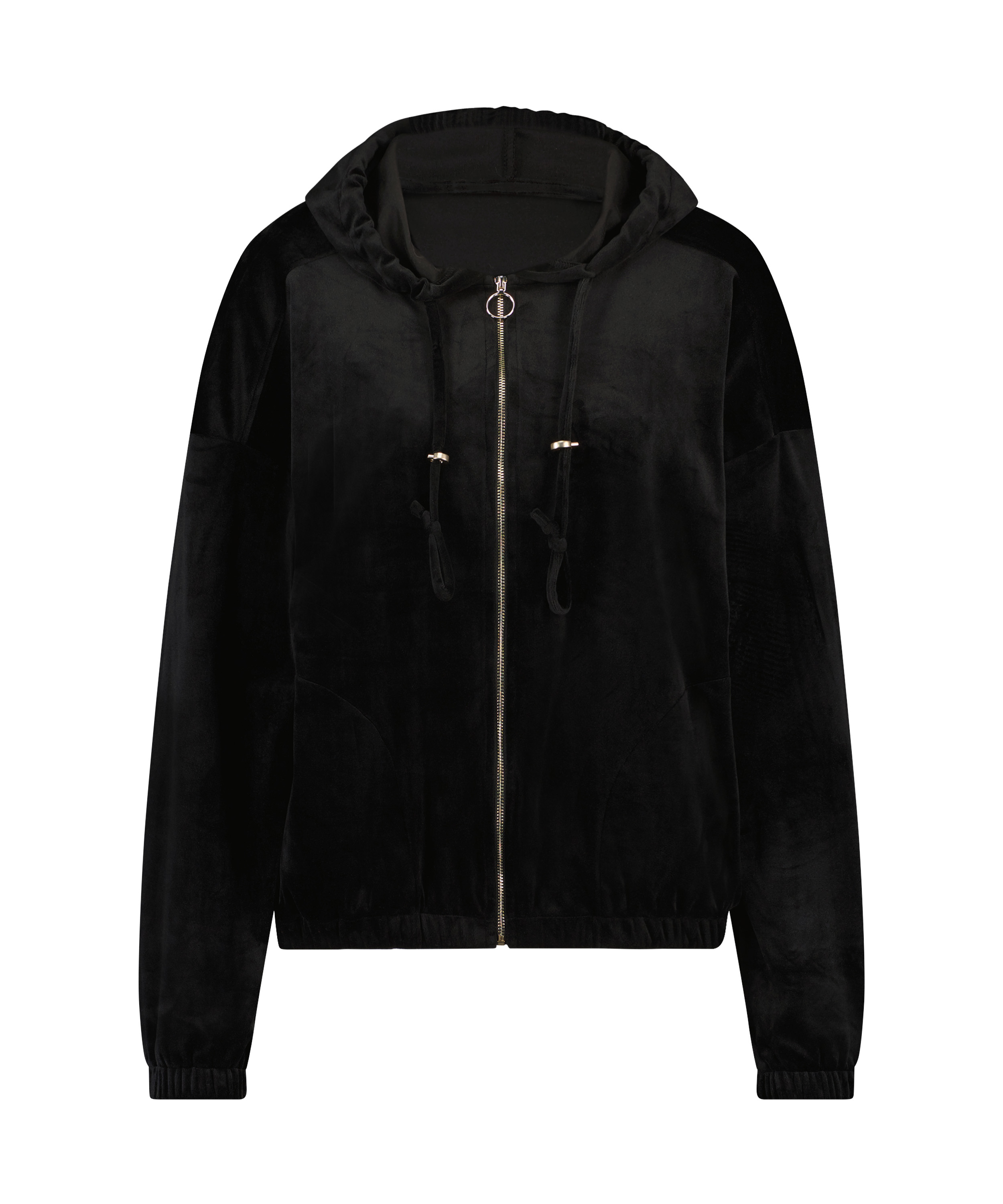 Kos deg i denne hoodie-jakken med hette! Jakken er laget av et mykt stoff og har en glidelås foran. Og på begge sider er det lommer. Kombiner med matchende bukse og du får en herlig, behagelig følelse.