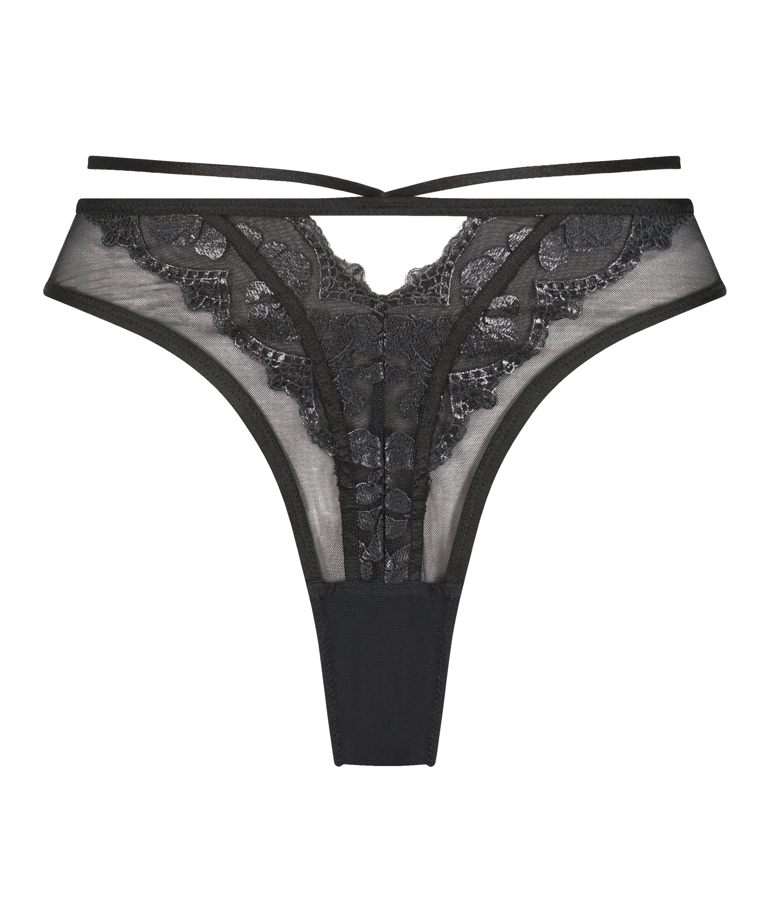Føl deg vel i denne brasilianeren! Gjennomført blondeutseende med frontdesign. Med strengelement som hviler på hoftene for et sexy uttrykk. Gjørs dette settet komplett med en matchende BH!