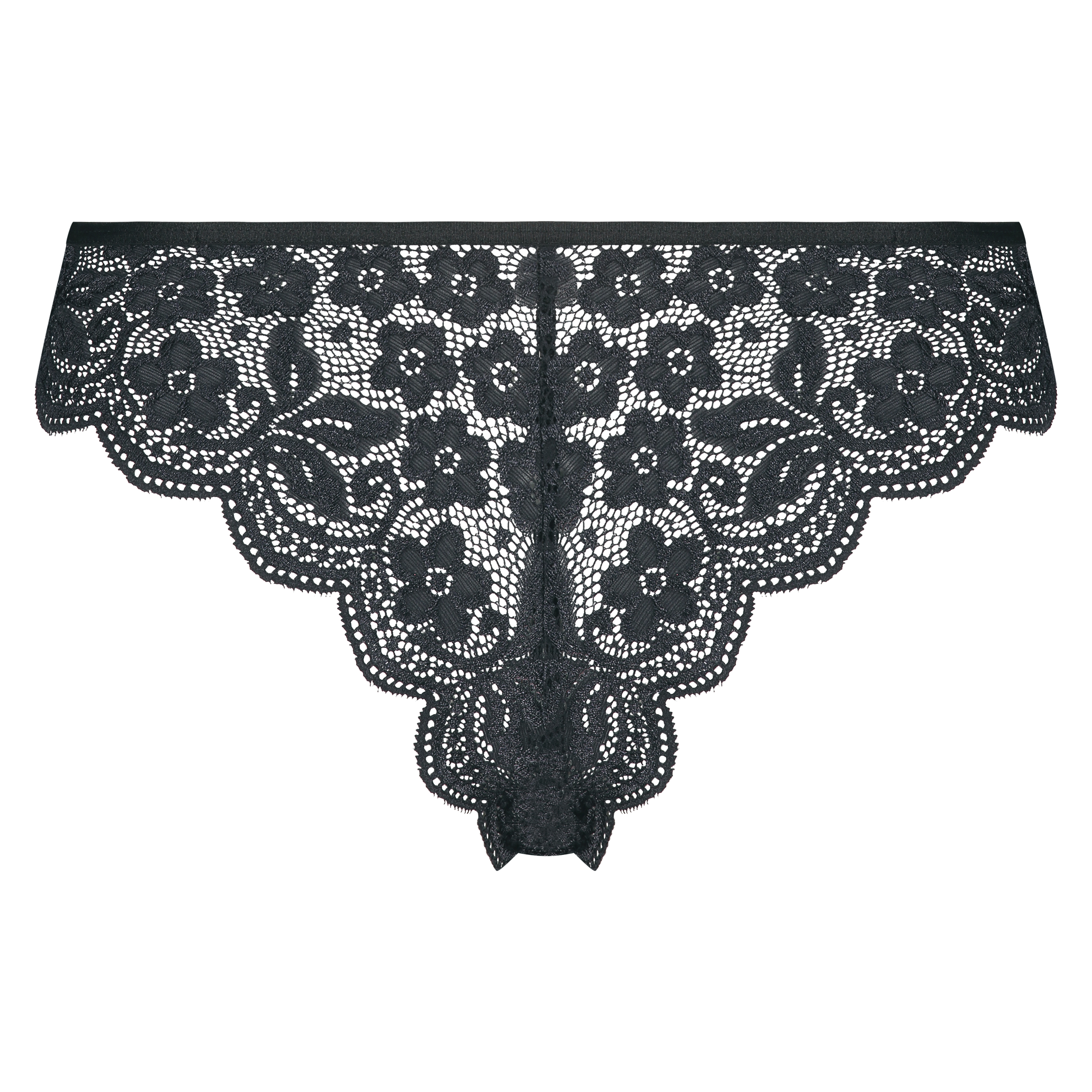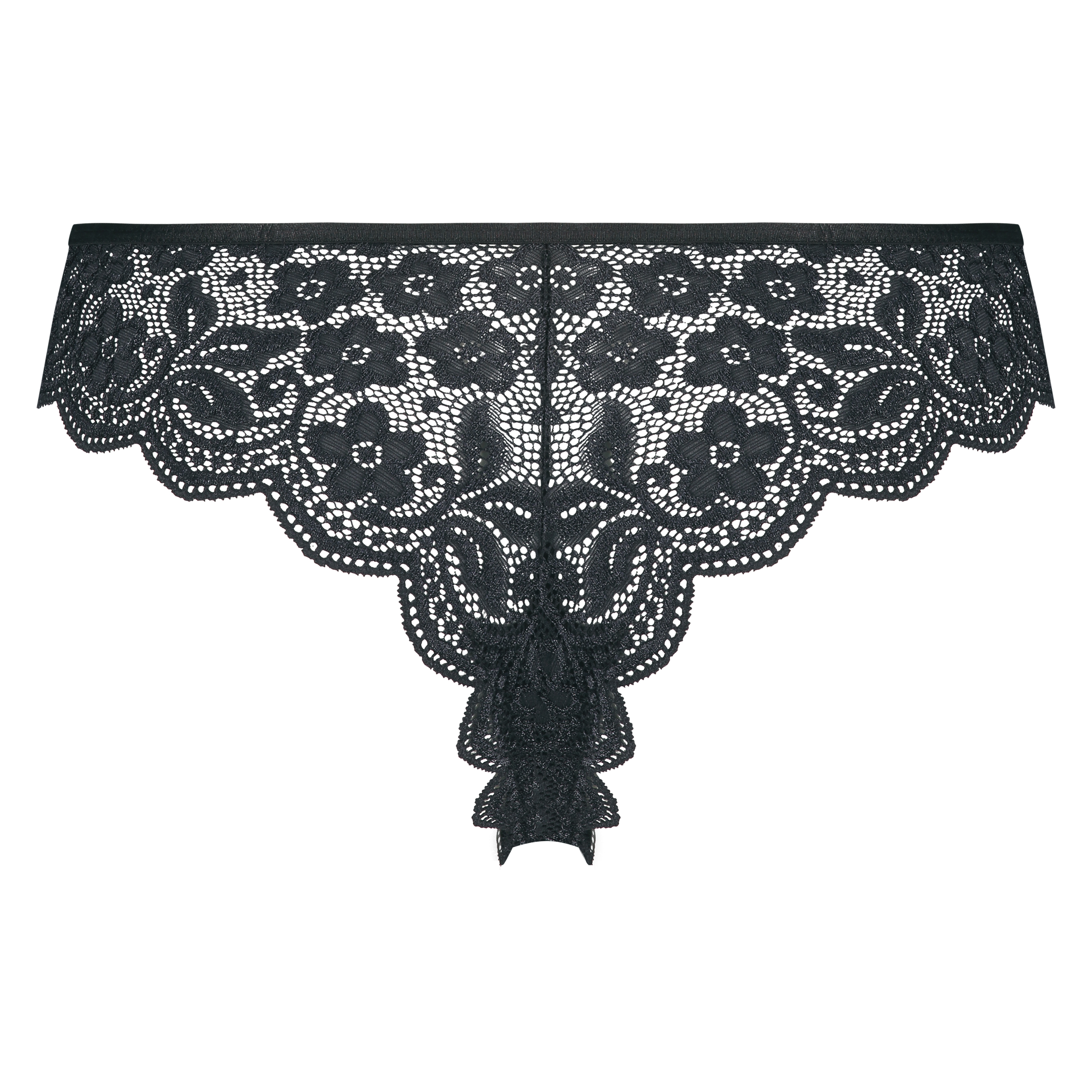 Gjør settet ditt komplett med denne nydelig pyntete høye brasilianeren. Den vil helt sikkert ta seg fantastisk ut! Blondestoffet har et nydelig innvevd blomstermønster.