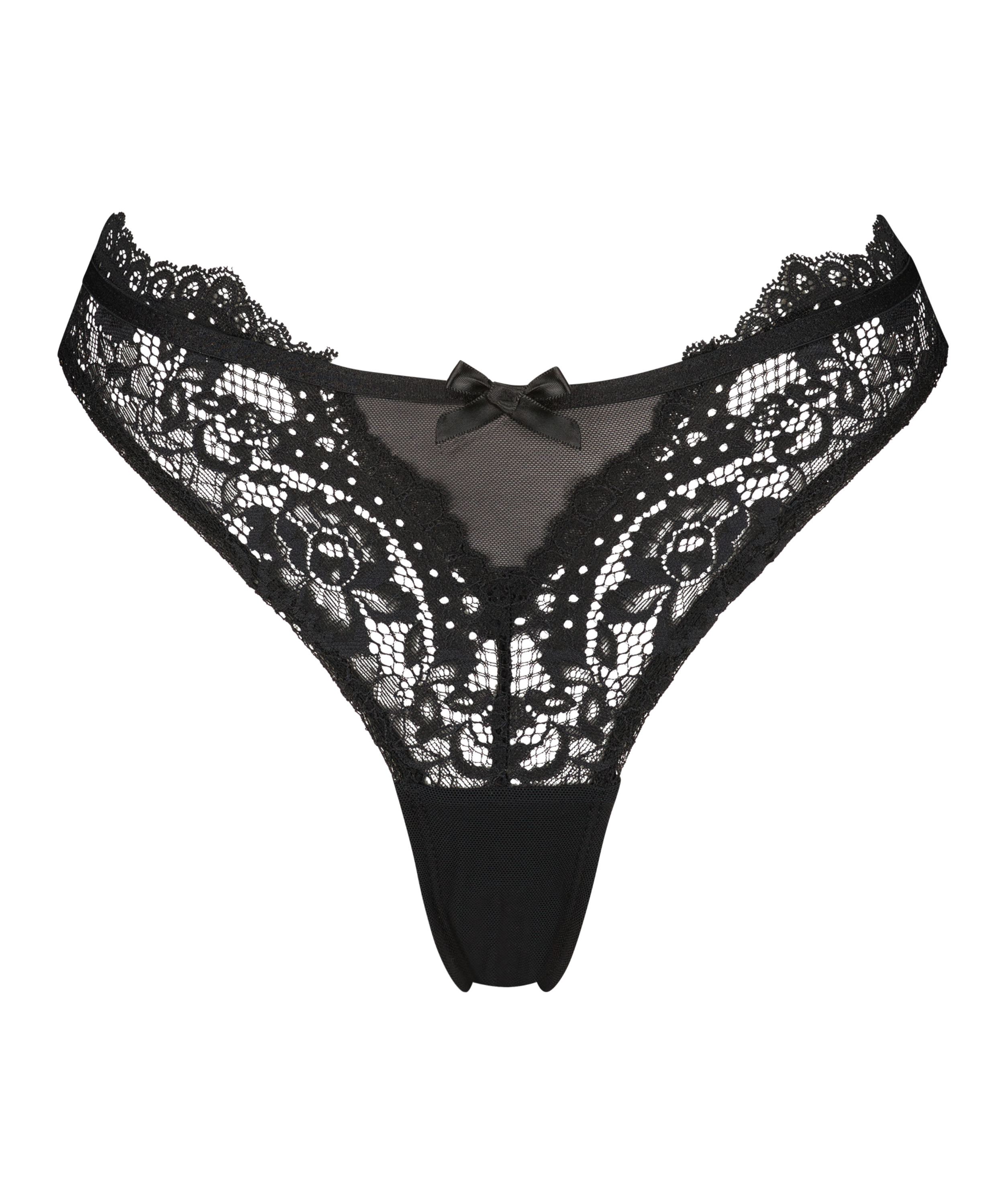 Strål i denne brasilianske trusen! Den brasilianske trusen har høy skjæring og er forsynt med vakre, luksuriøse detaljer av blonder og mesh.Sløyfen foran er virkelig prikken over i-en!