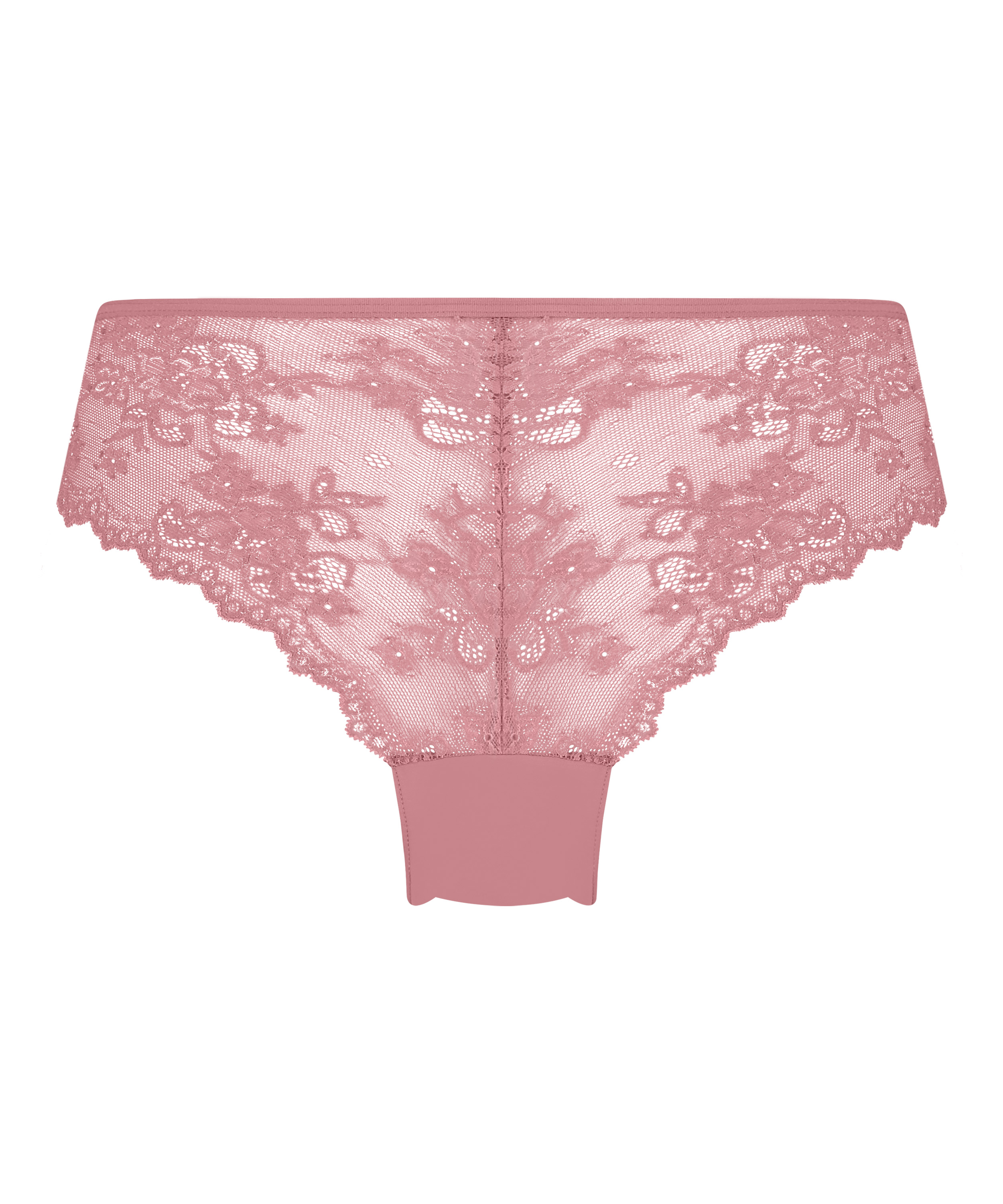 Denne brasilianske underbuksen er sømløs, så den vises ikke gjennom trangtsittende klær. Blondene bak gir den et sexy utseende.