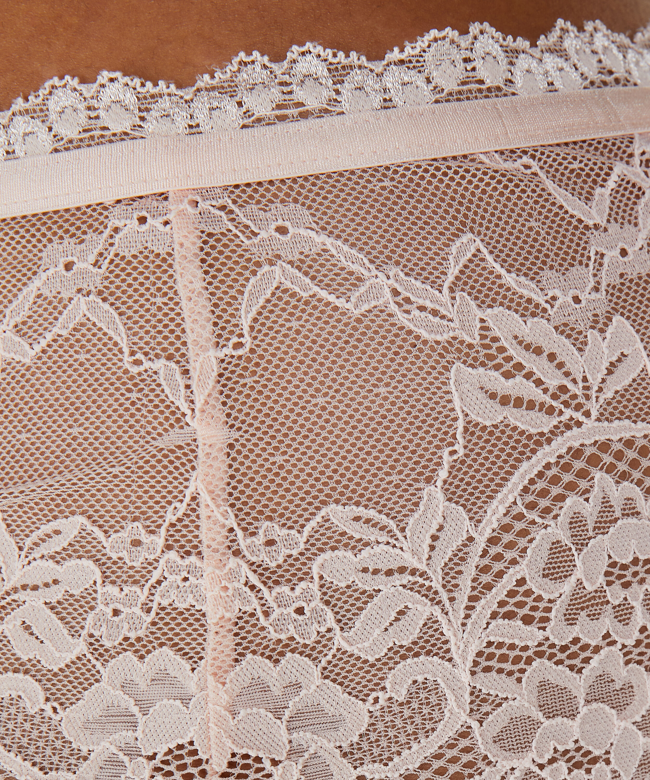 Denne brasilianske underbuksen er sømløs, så den vises ikke gjennom trangtsittende klær. Blondene bak gir den et sexy utseende.