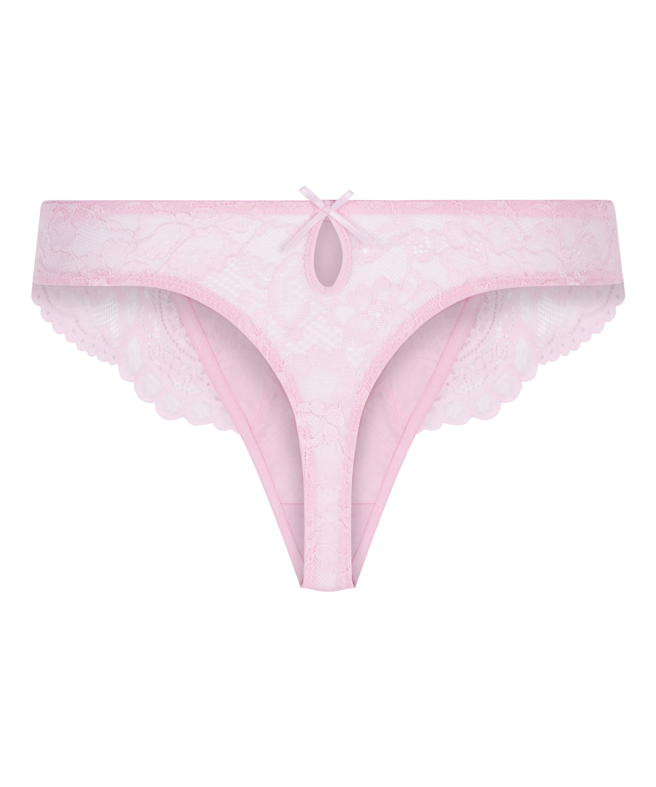 Litt blonder skader aldri! G-strengen er avsluttet med halvgjennomsiktig rosa blonder. Legg til en matchende BH for en komplett look.