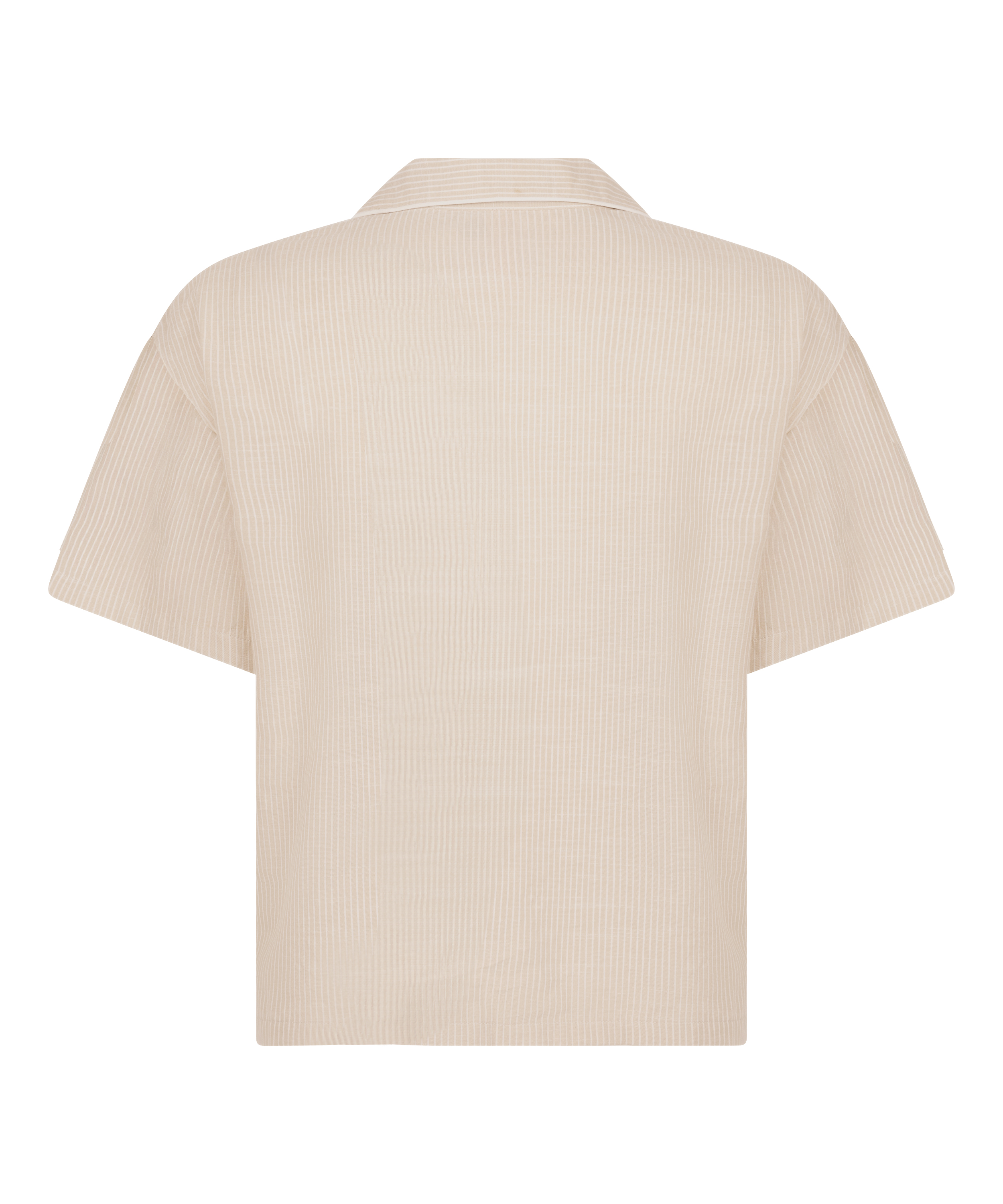 Hold deg kjølig og avslappet i denne pyjamastoppen, et uunnværlig plagg med tidløs stil. Den har krage, knappelukking og korte ermer som gir en avslappet passform. Kombiner med den matchende shortsen for å få en gjennomført look.