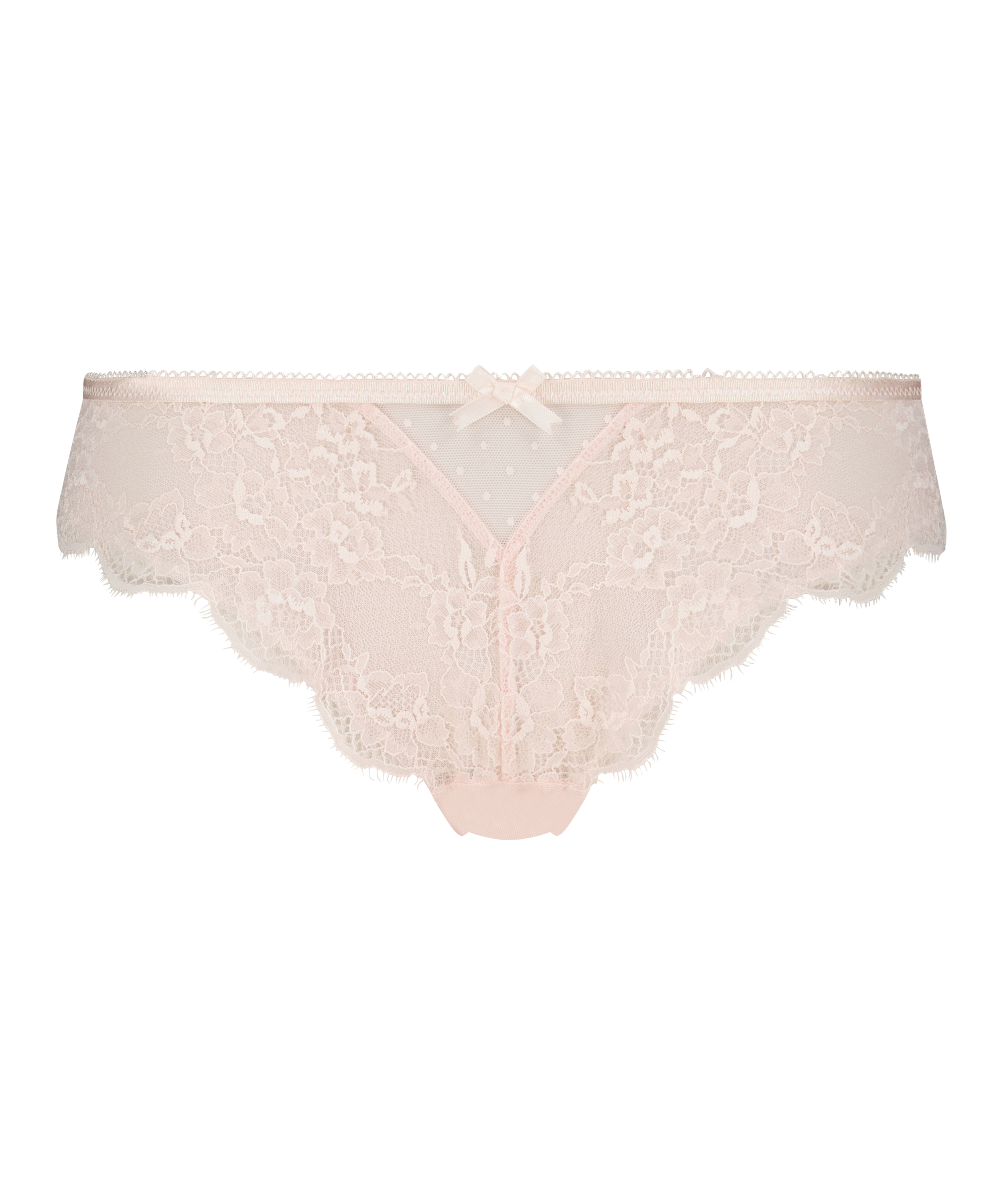 Se strålende ut i denne vakre brasilianske trusen! Den er lagd av blonder og netting og har en søt liten sløyfe. Kombiner med matchende artikler for et komplett antrekk!