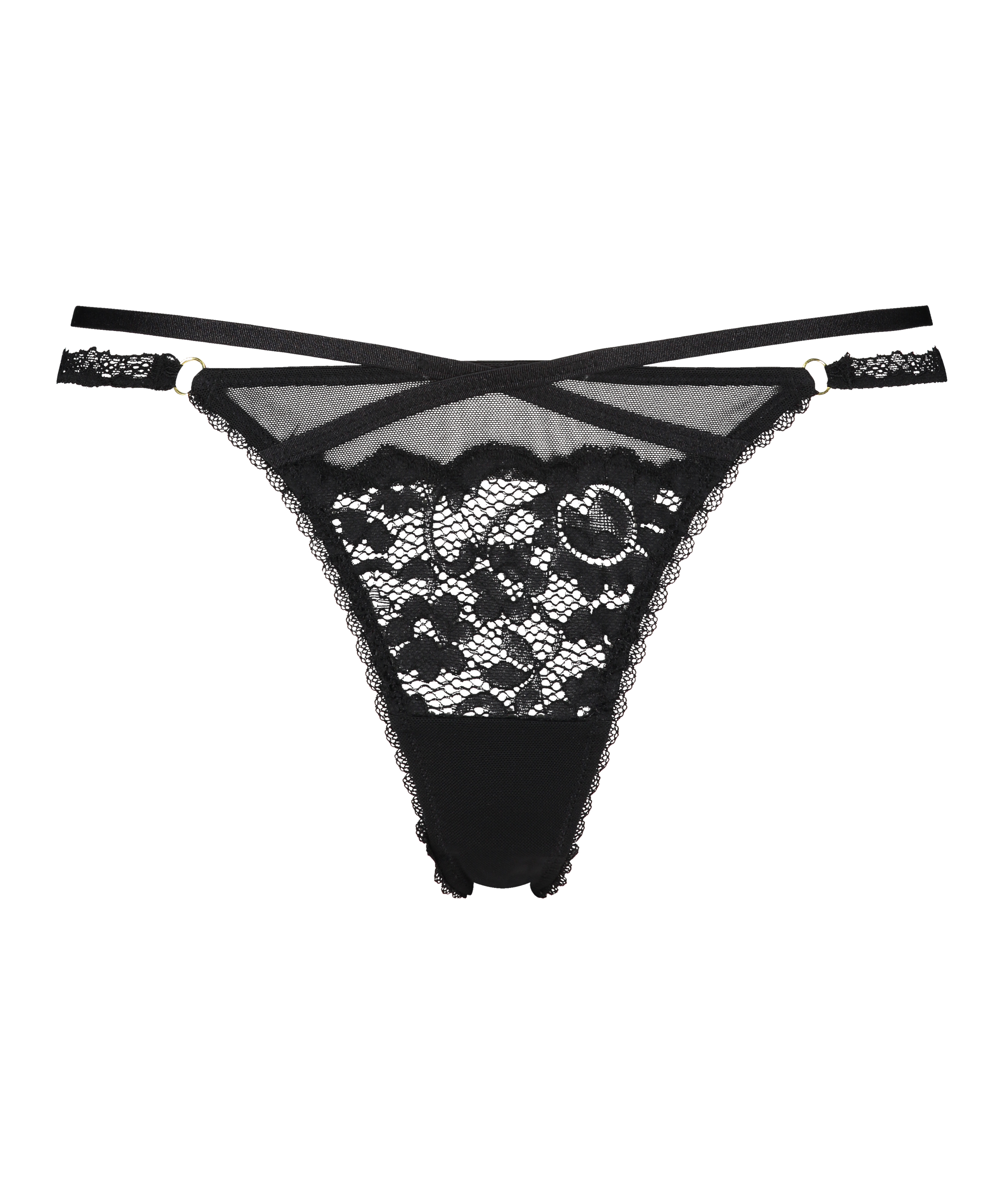 Føl deg supersexy i disse lekre stringtrusene. Den er forseggjort med strappy detaljer og har små ringer som detalj. Kombiner med en matchende BH.