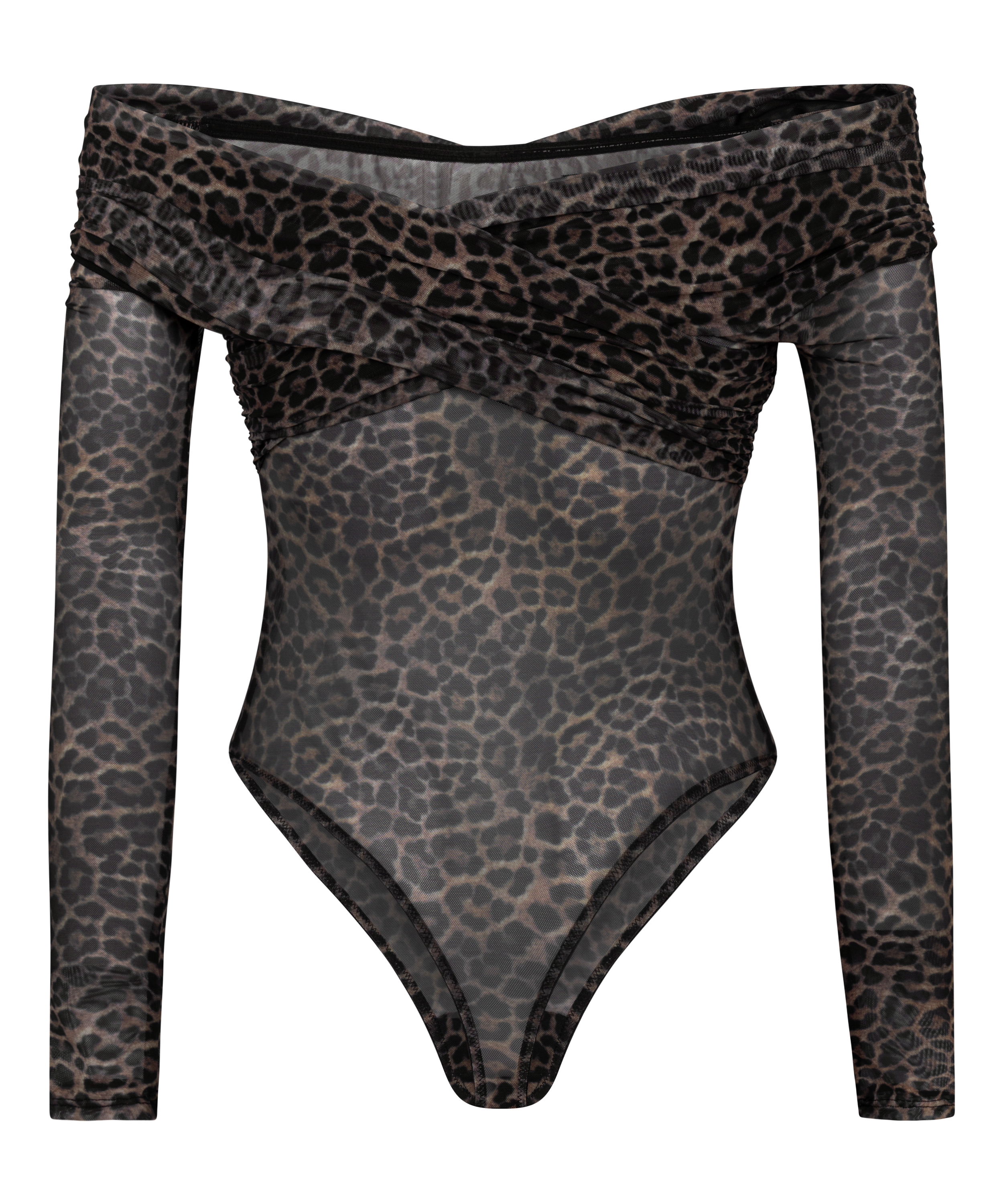 Denne Sleek Leopard Body er laget av glatt, elastisk stoff som tilpasser seg kurvene dine, og har et slående leopardmønster som gir et selvsikkert og moteriktig utseende. Den ekstra stoffdetaljen gir et raffinert preg. Den har en enkel trykknapplukking nederst, og er perfekt til å style alene eller under favorittplaggene dine for en vill, men polert stil.