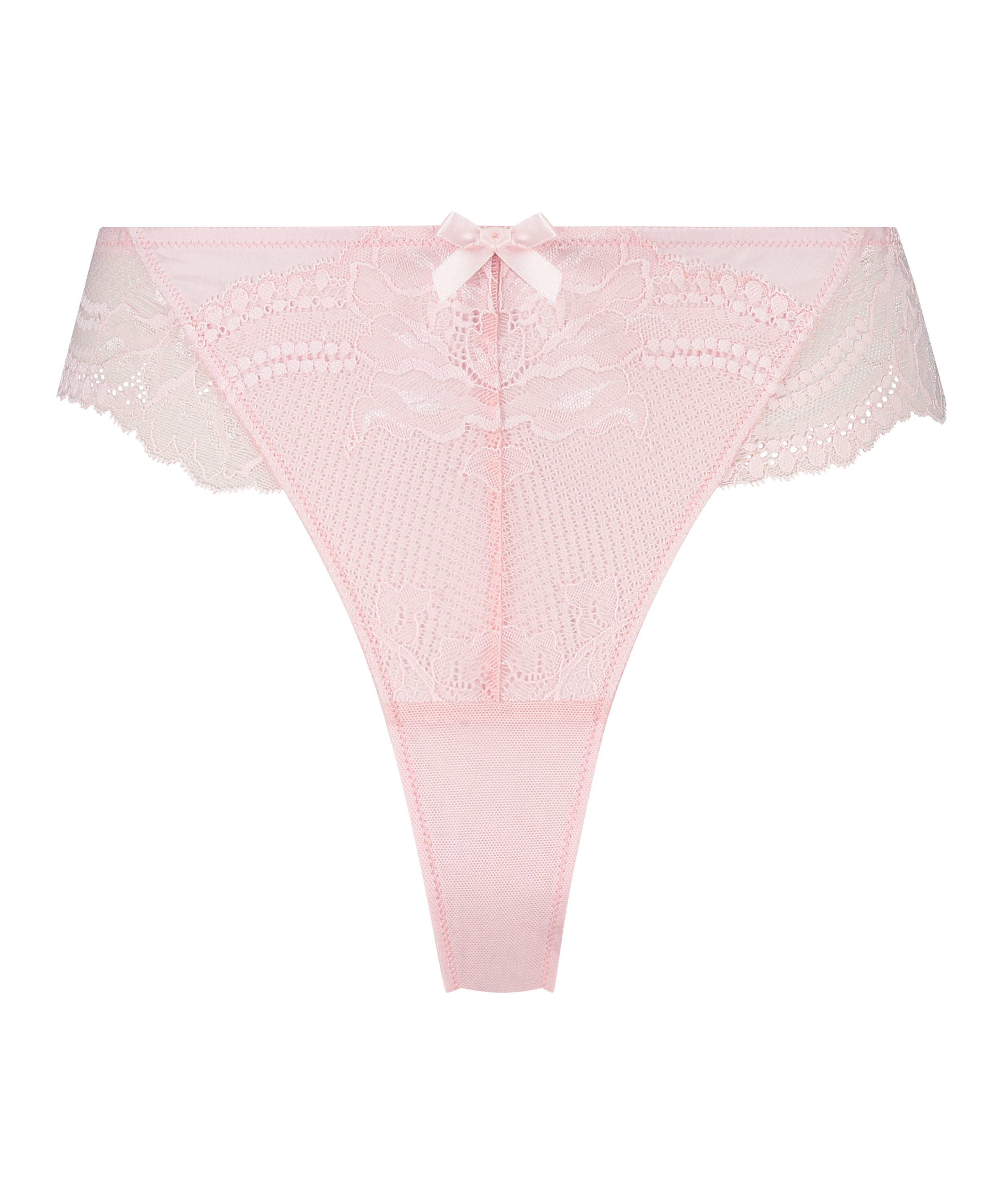 Føl deg søt i denne thongen! Med mange blonder og broderte detaljer foran. Den har et søtt blondeskjørt på sidene for en mer romantisk finish. Finish med bøyle foran. Finn en matchende BH for å få et komplett sett!