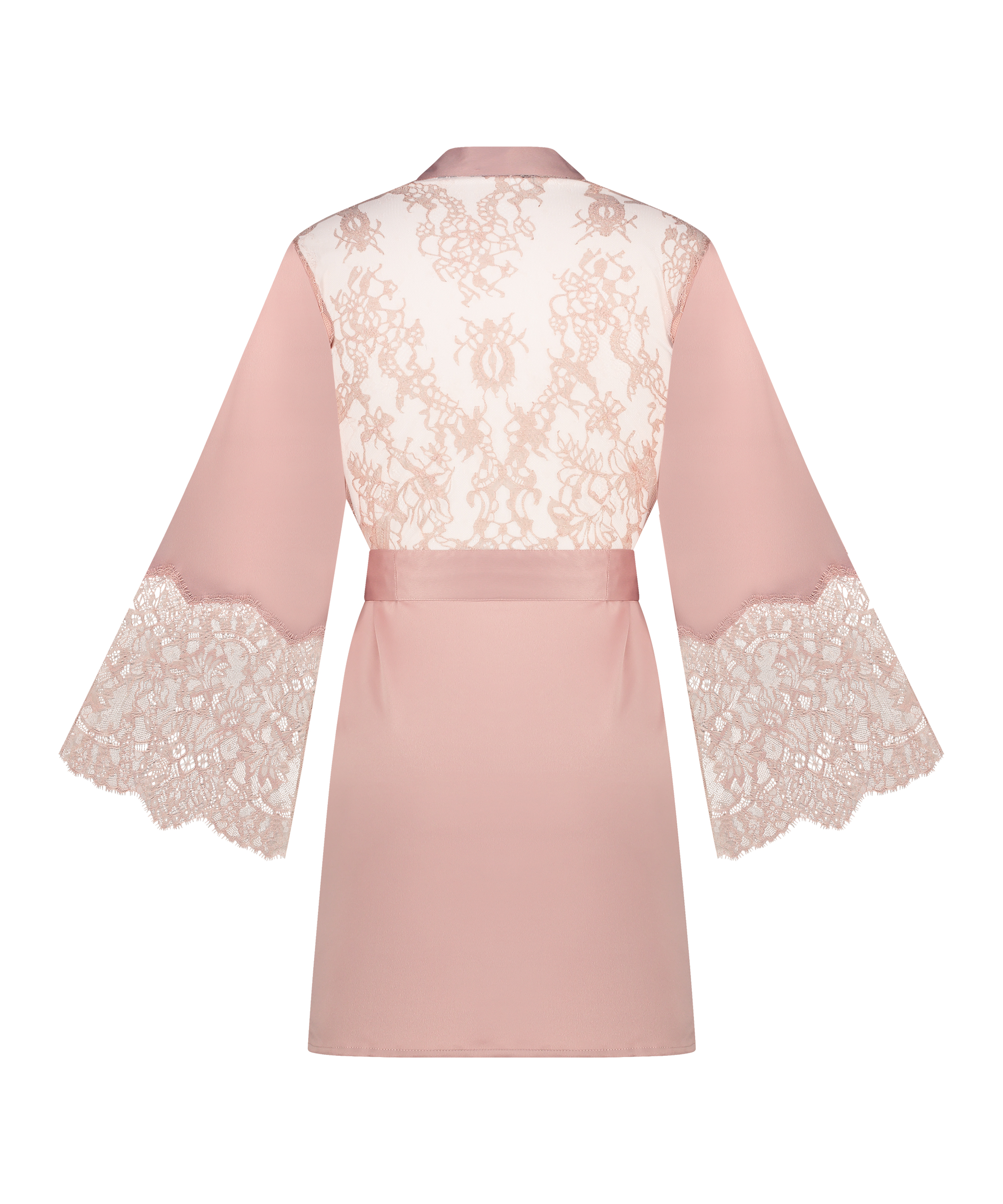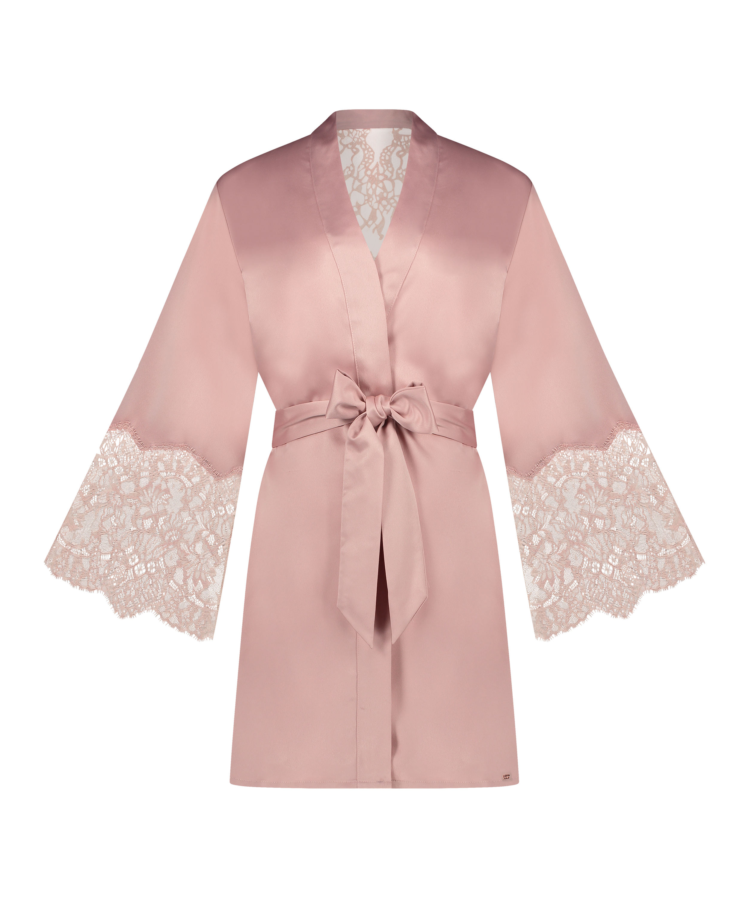 Velg en elegant look med denne kimonoen! Denne utrolig luksuriøse kimonoen er laget av sateng og blonder, som begge er svært myke materialer. Kombiner den med en slipkjole for å fullføre looken. En del av Noir-kolleksjonen.