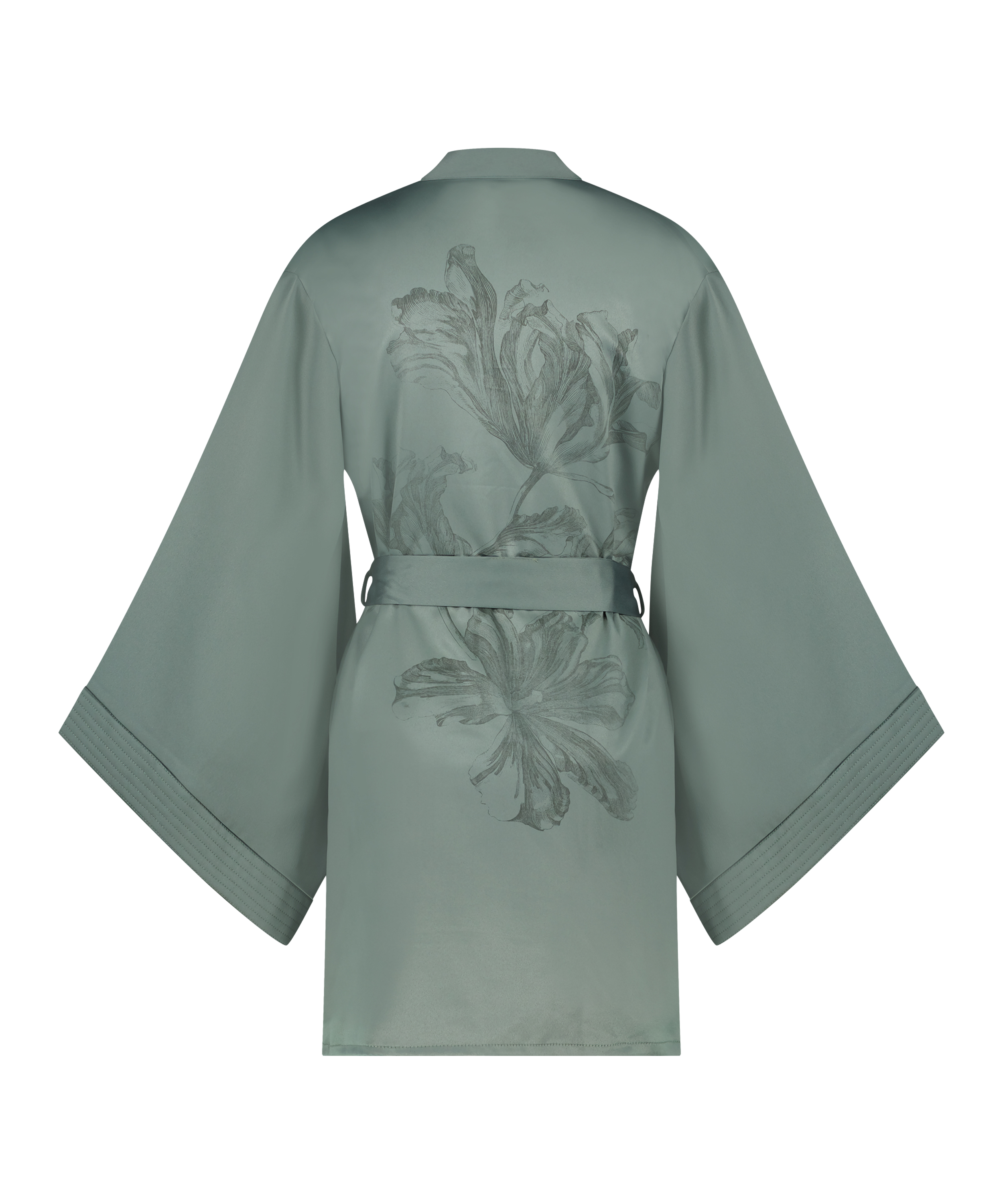 Ikke la denne elegante kimonoen gå fra deg – den er perfekt til å piffe opp nattantrekket ditt! Laget i supermykt stoff og holdes sammen med en snor. Kombiner den med en slipkjole for en gjennomført stil! En del av Noir-kolleksjonen.