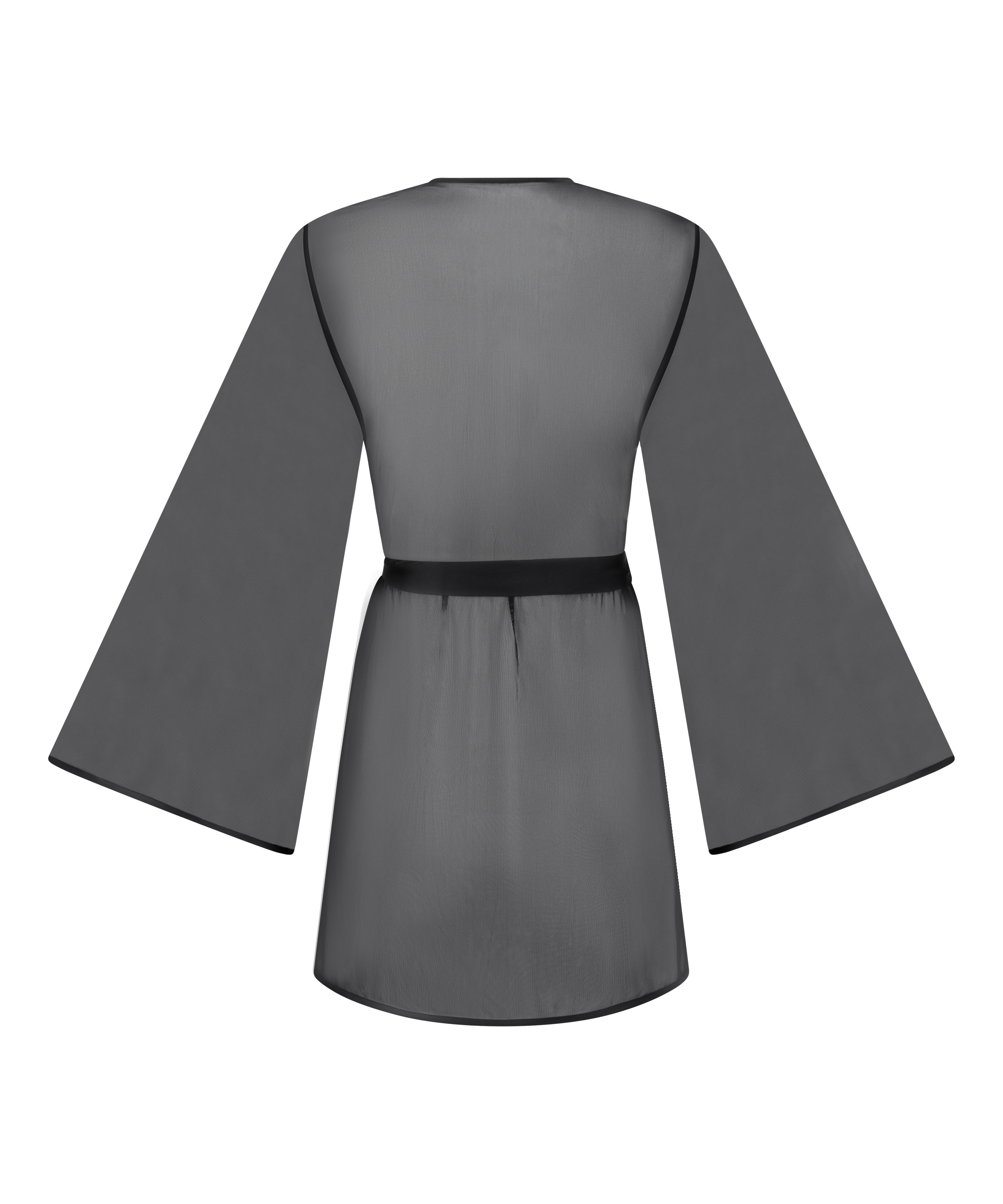 Smyg deg inn i noe uanstrengt og elegant med denne kimonoen i mesh, designet for å løfte nattøyet ditt! Det gjennomsiktige mesh-stoffet faller fint og tilfører et mykt og feminint preg til kveldsrutinen din. Lett og pustende – perfekt å bruke over undertøy eller nattøy. Den løse silhuetten og de fine detaljene skaper en romantisk og avslappet stemning. Kombiner den med favorittundertøysettet ditt for en komplett look!