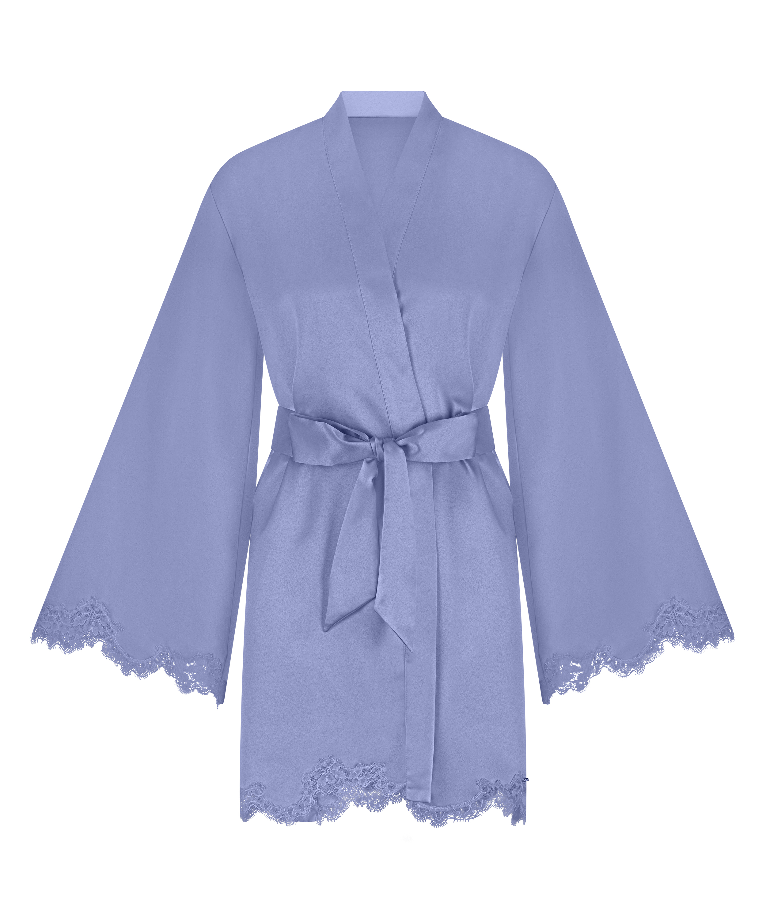 Gå ikke glipp av denne elegante kimonoen! Med mengder av romantiske blonder og ordentlig knytelukking. Denne bedårende kimonoen har vide ermer og er laget i et satengmateriale som gir den et luksuriøst utseende. Kombiner med matchende plagg. En del av vår Noir kolleksjon.