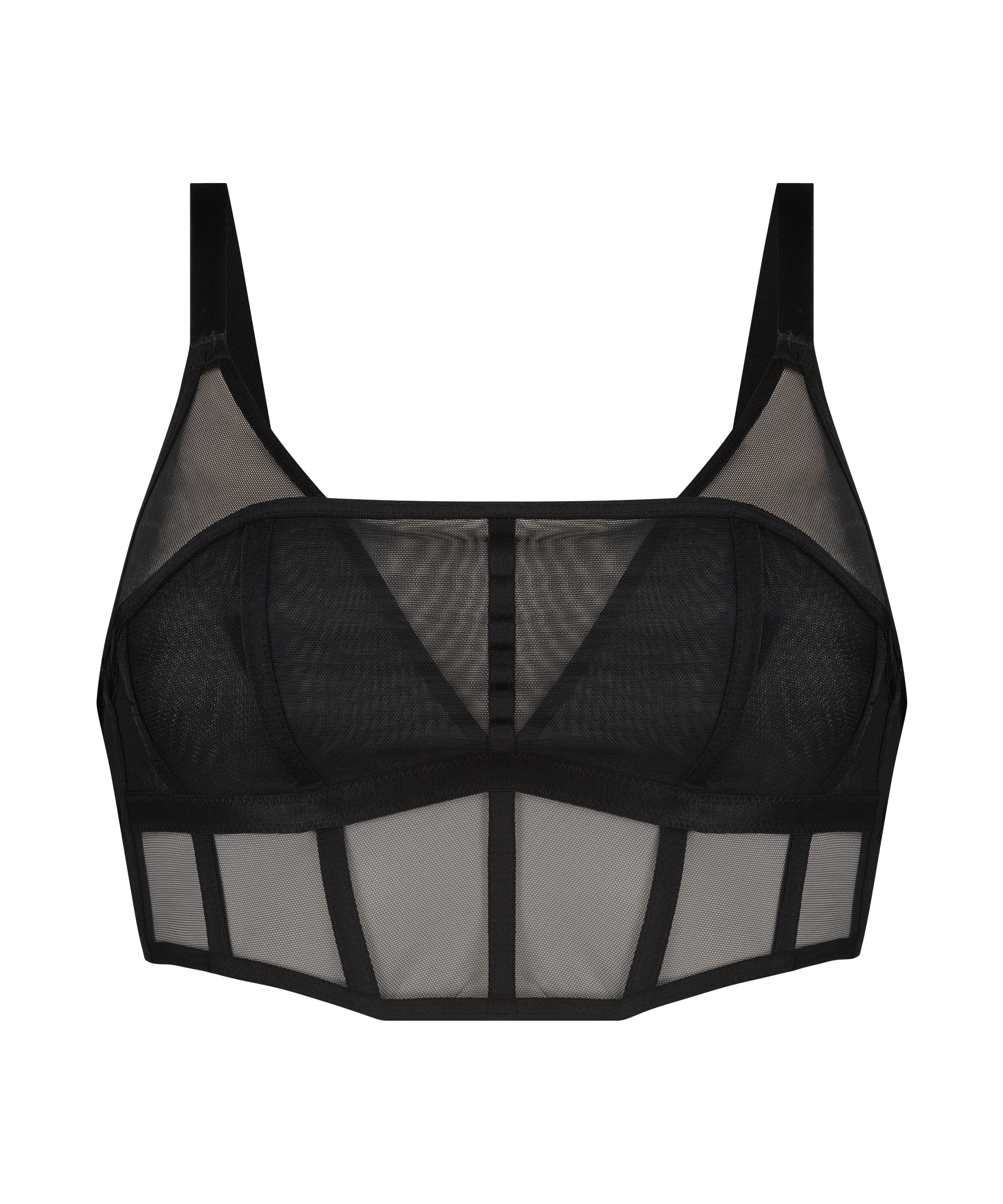 Ha det behagelig og føl deg feminin i denne toppen! Den er laget i et nettingstoff som gir et halvt gjennomsiktig inntrykk. Toppen har lengre passform for ekstra komfort. Kombiner med matchende truser.