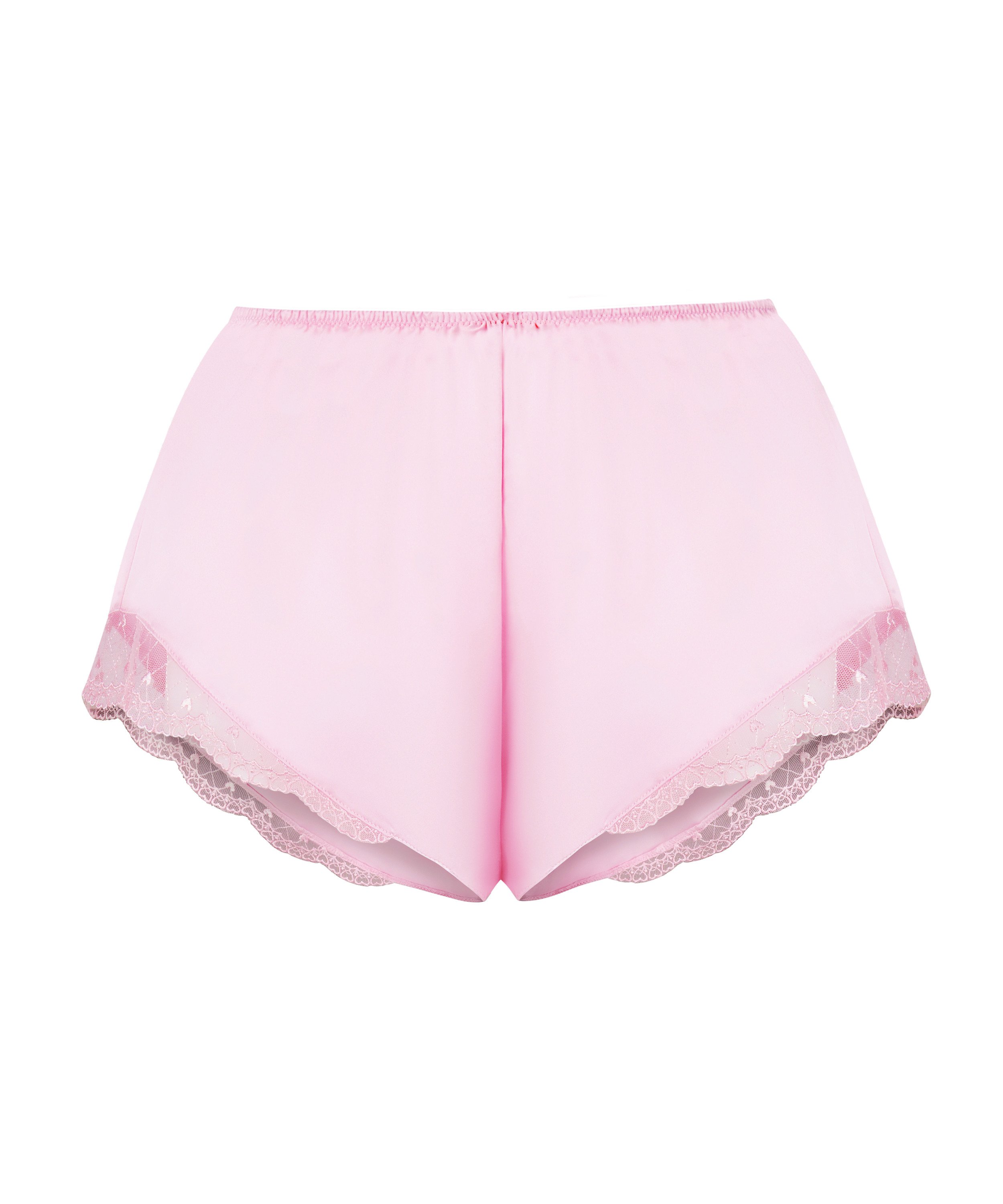 Oppgrader loungewearen din med disse luksuriøst myke shortsene med satenglook og -følelse, der komfort møter feminin sjarm. Disse shortsene har elastisk linning for en perfekt, fleksibel passform. En sløyfe i midten gir et lekent preg, mens blondekanten skaper en elegant og romantisk detalj. Disse shortsen er ideelle for avslappende kvelder eller sammen med matchende topper, og kombinerer mykhet og stil.