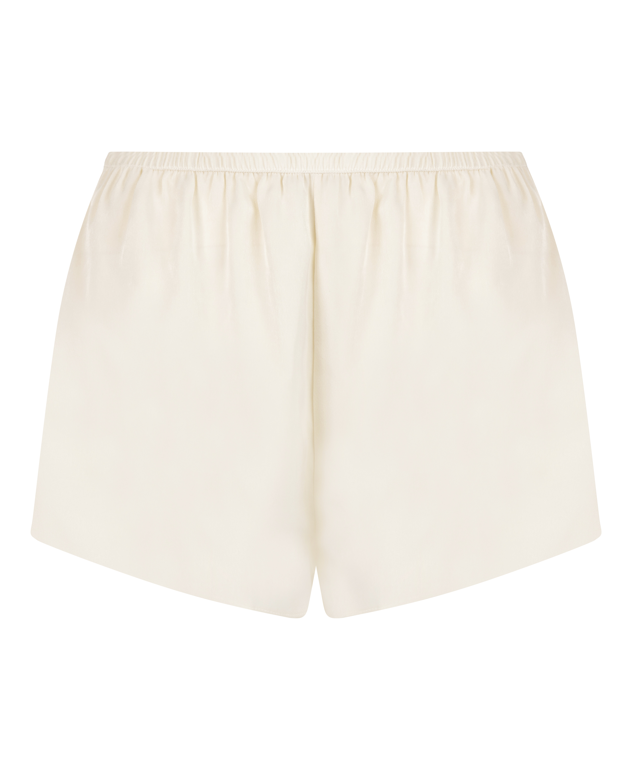 Uanstrengt luksus møter hverdagskomfort – oppdag våre satengshorts, designet for komfort og stilig utseende. Laget av stoff med sateng-look og følelse, glir disse shortsene lett over huden for en silkeaktig følelse. Den elastiske midjen sikrer perfekt passform og gir en avslappet, lettbær silhuett. Ideell for avslapning hjemme eller sammen med en enkel T-skjorte. Oppgrader garderoben med disse satengshortsene – et plagg du vil ta frem igjen og igjen.