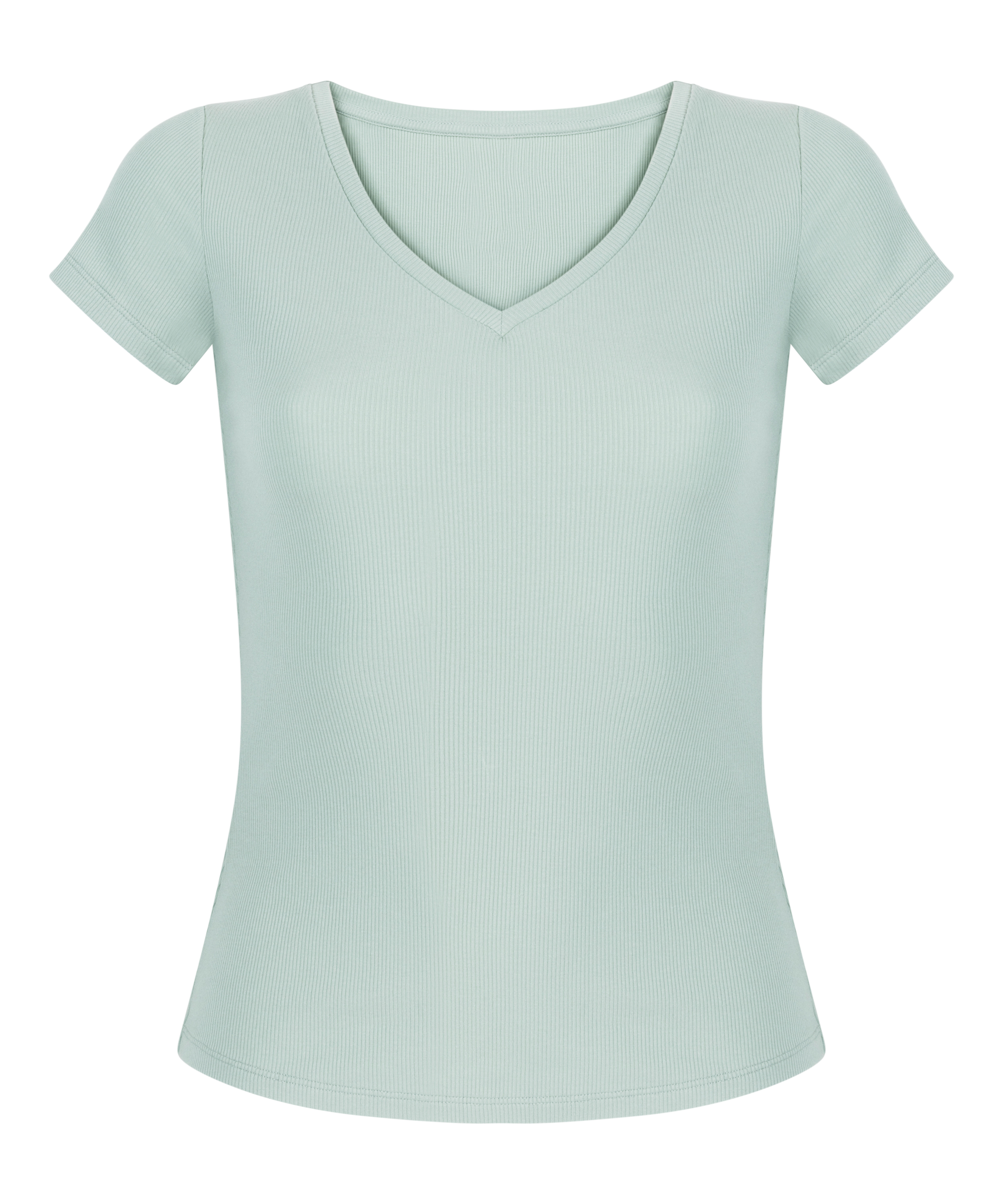 Kortermet pyjamastopp i ribbestrikket jersey - Grønn