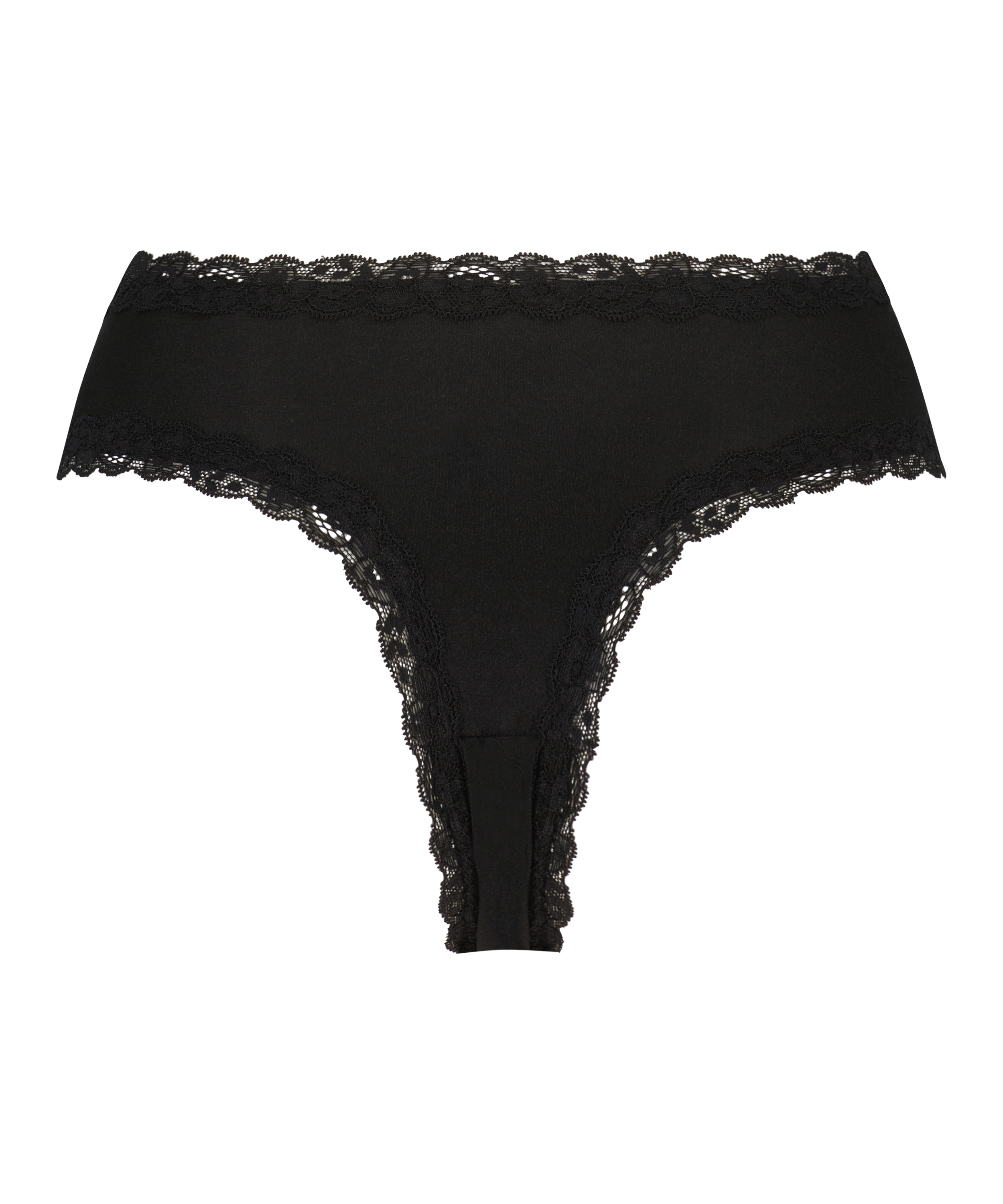 Denne brasilianske trusen er halvt gjennomsiktig og pyntet med blondedetaljer. Snøringsdetaljene gir den et ekstra sexy utseende. Forsiden er laget av mesh og baksiden av mikrofiberstoff. Kombiner med den matchende BH-en og få et fullendt utseende.