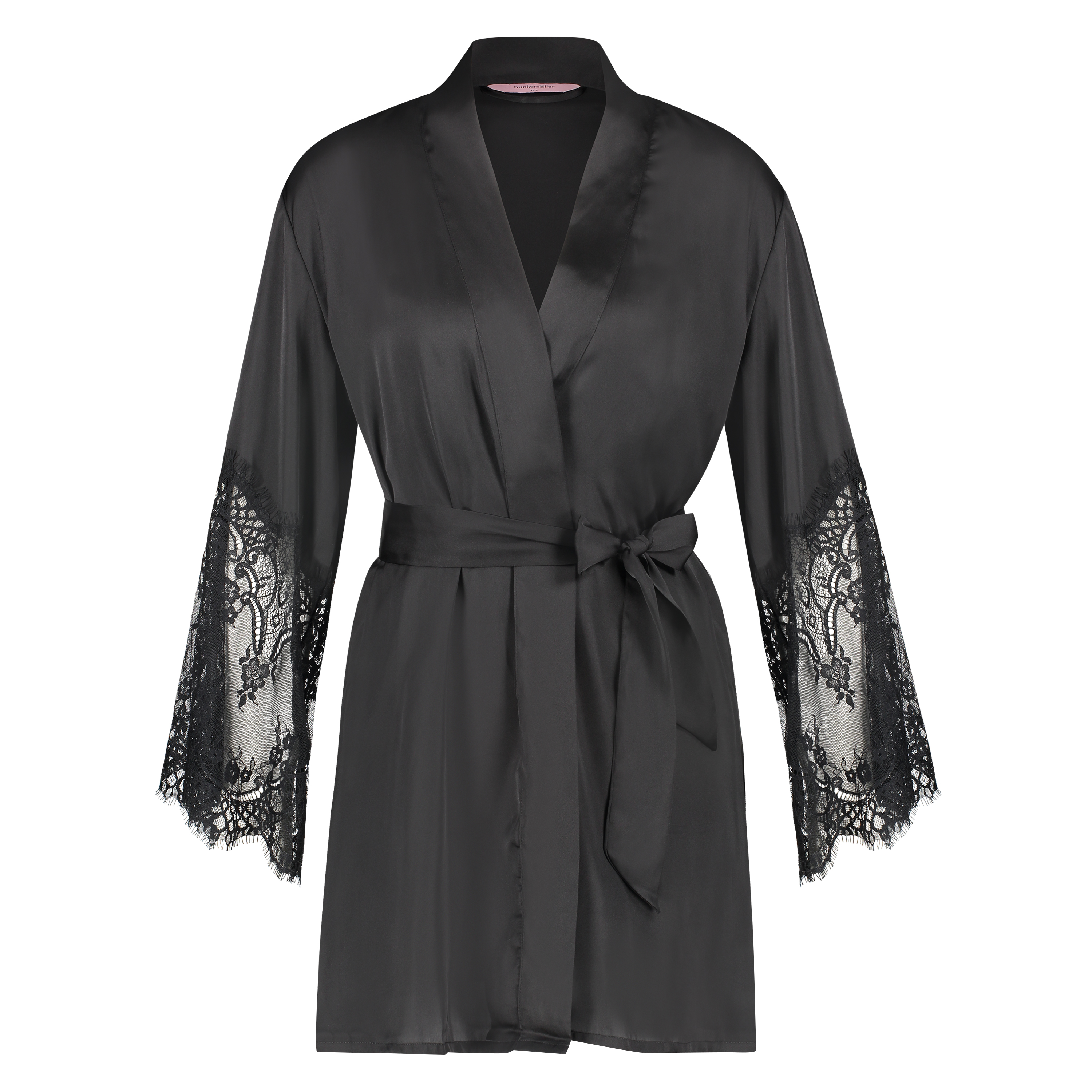Gjør undertøysettet ditt enda mer forførende med denne kimonoen! Kimonoen har satenglook og -feeling og er pyntet med blonder.
