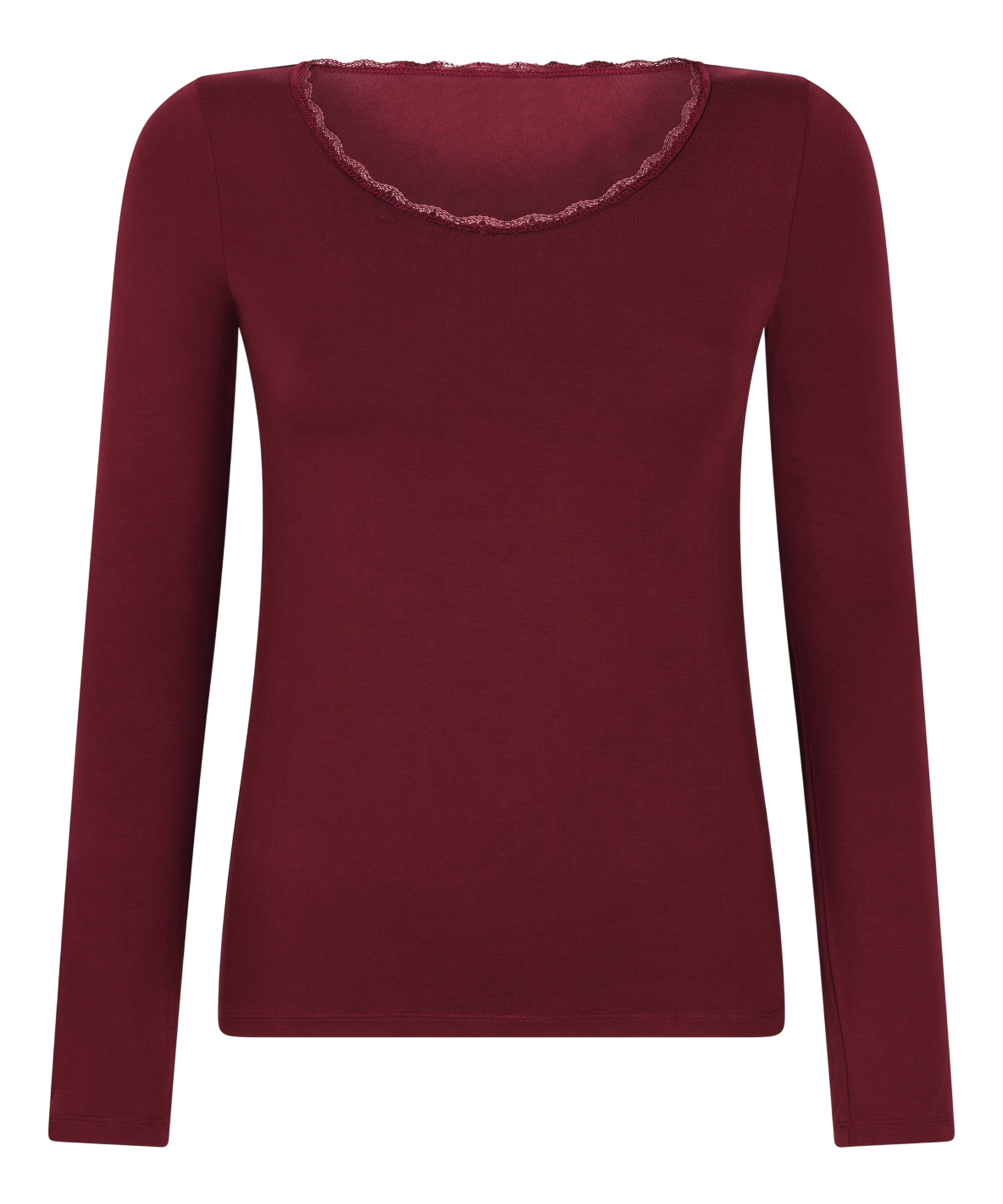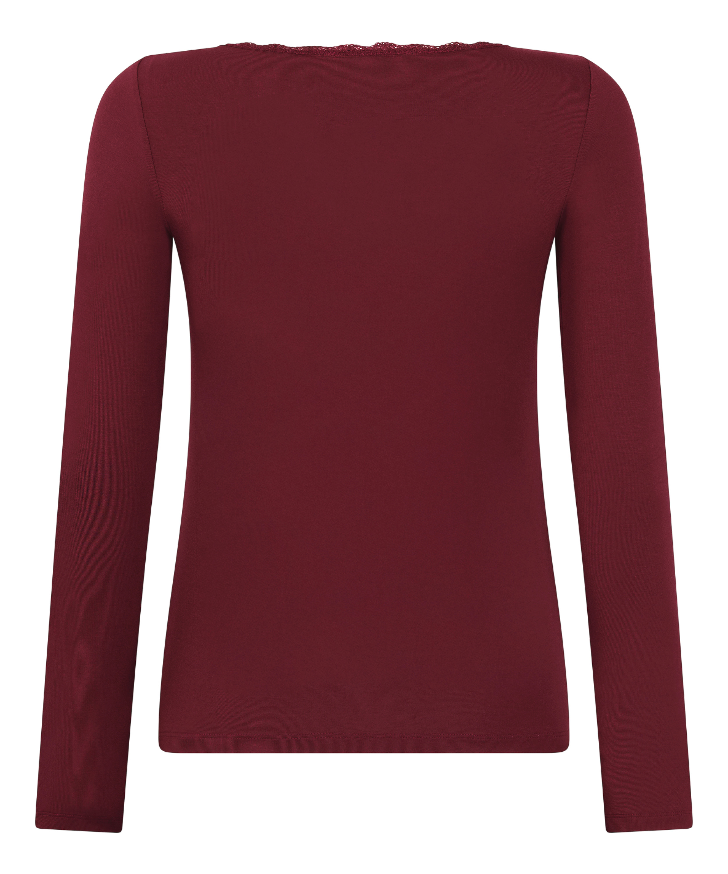 Slapp av med stil i denne myke pyjamasoverdelen med lange ermer. Den er dekorert med blonder langs halsen og kombinerer komfort med et snev av eleganse – perfekt for rolige morgener og koselige kvelder. Det pustende stoffet faller vakkert rundt kroppen, og gjør den til din nye favoritt til å slappe av i eller bruke under din favorittkåpe.