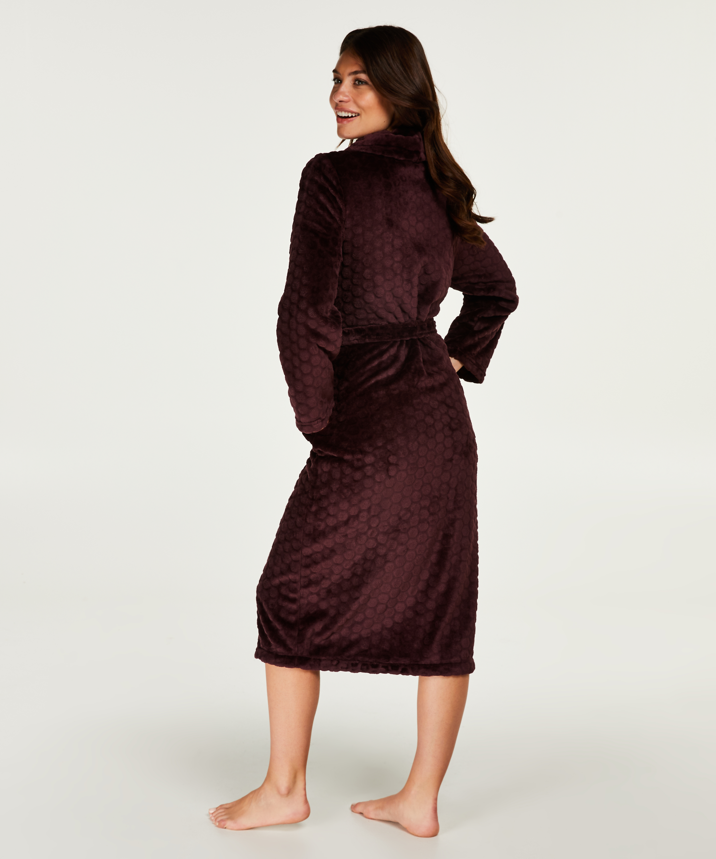 Denne deilige, myke badekåpen går til nedenfor knærne og har knyttebelte og sidelommer.