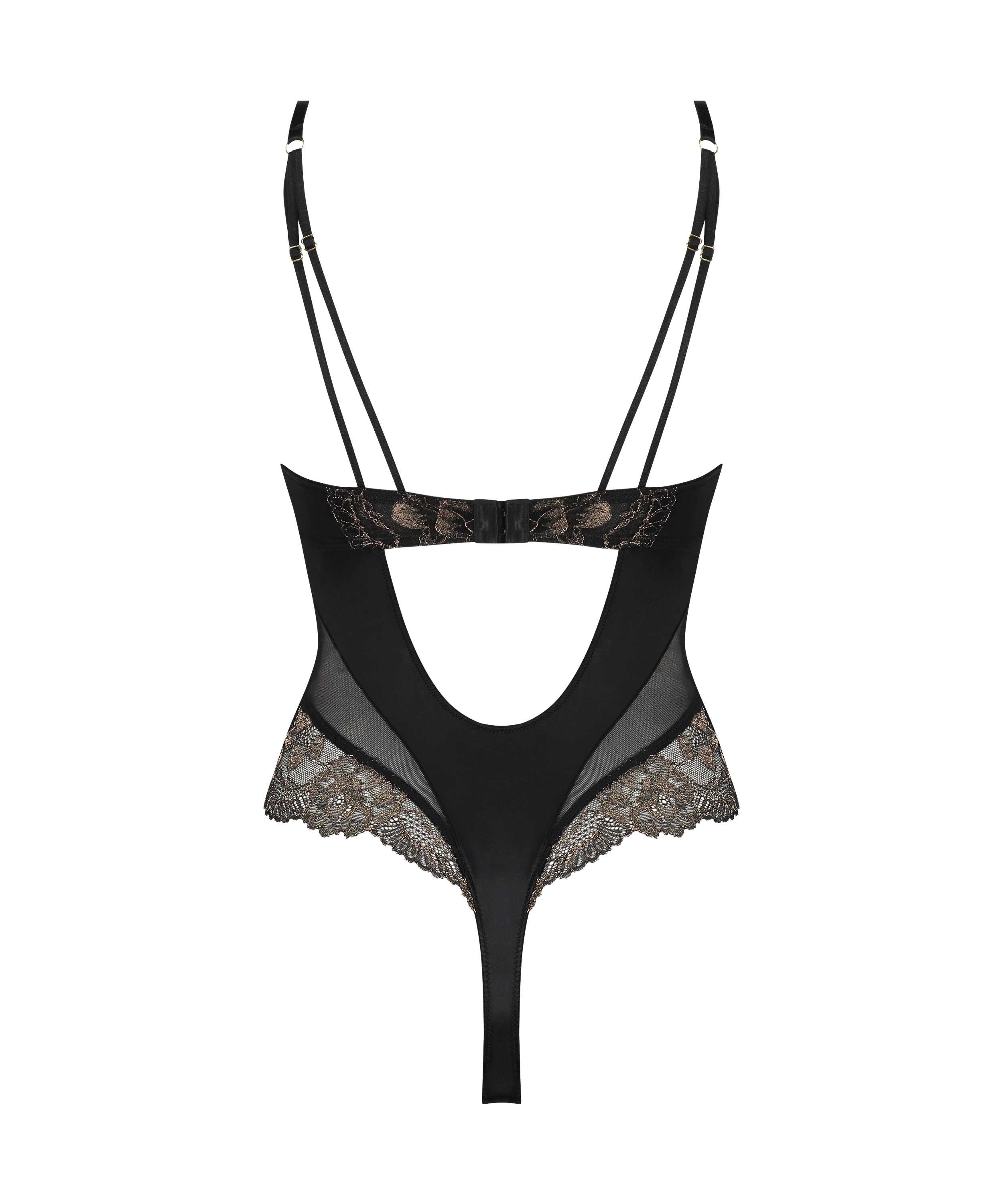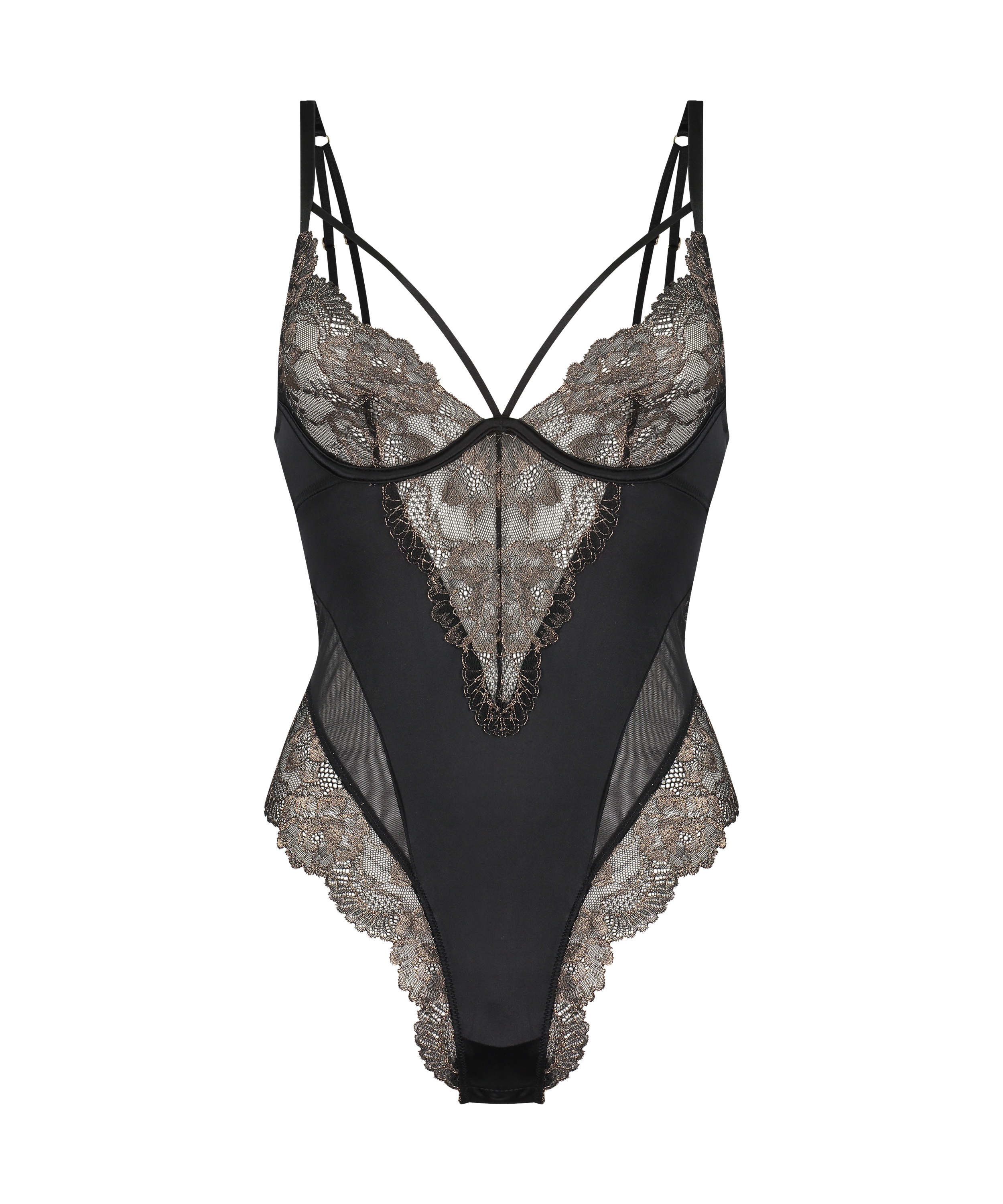 Selvsikkerheten er på topp i denne vakre bodyen! Med massevis av blondedetaljer foran og på hoftene. I tillegg til sexy stroppedetaljer på brystet. Det tynne materialet gir en enda dristigere look! Kjøp nå!
