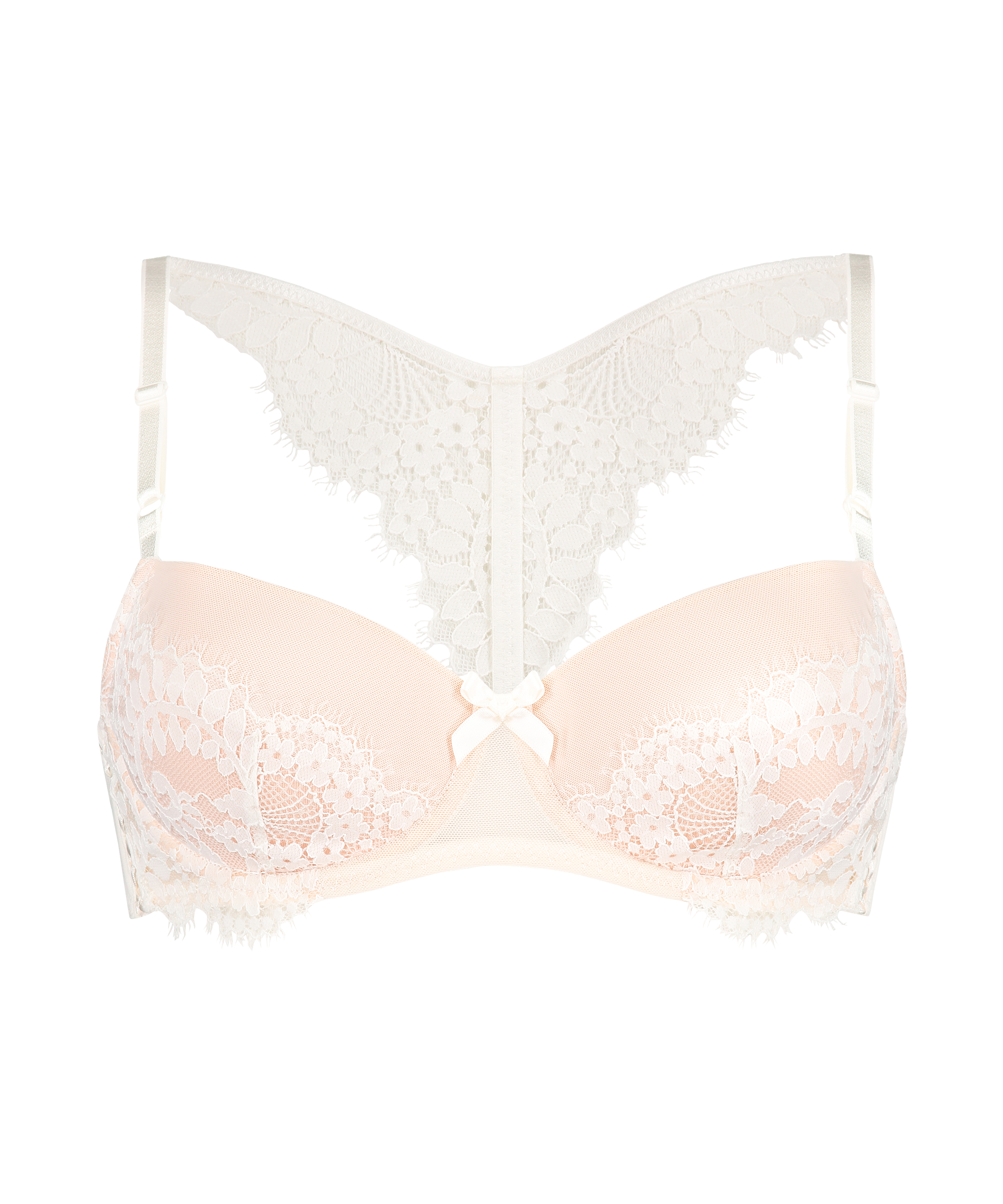 Denne BH-en er virkelig et må-ha! BH-en har detaljer av blonder og mesh. Bak er det en bryterrygg, noe som gjør den helt spesiell. Foran er det en liten sløyfe. Kombiner med matchende artikler for å gjøre settet ditt komplett!