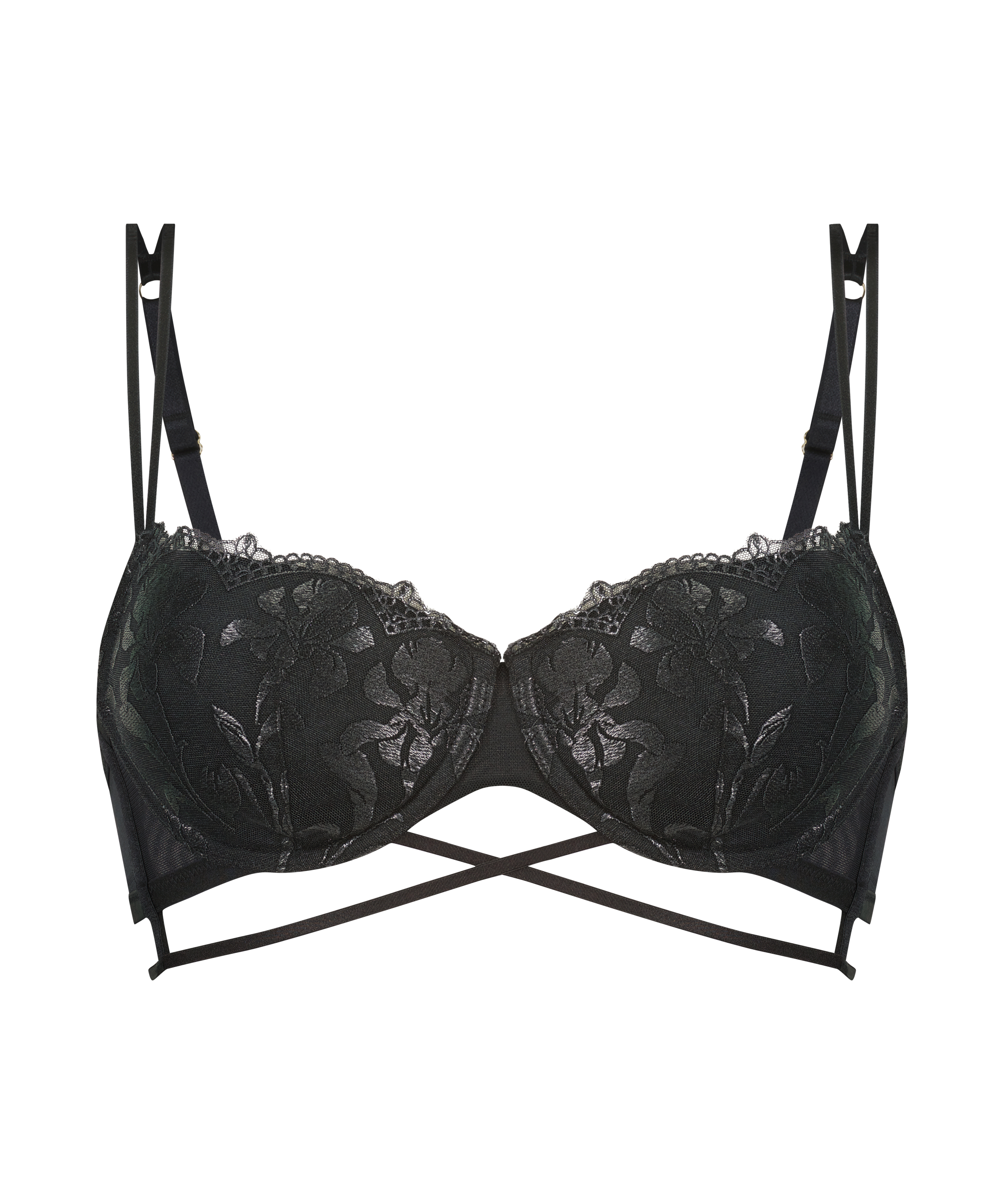 Føl deg trygg med denne BH-en! Med støtte til skålene og blondedesign. Med bånd foran og bak. Gjør settet komplett med matchende truse!