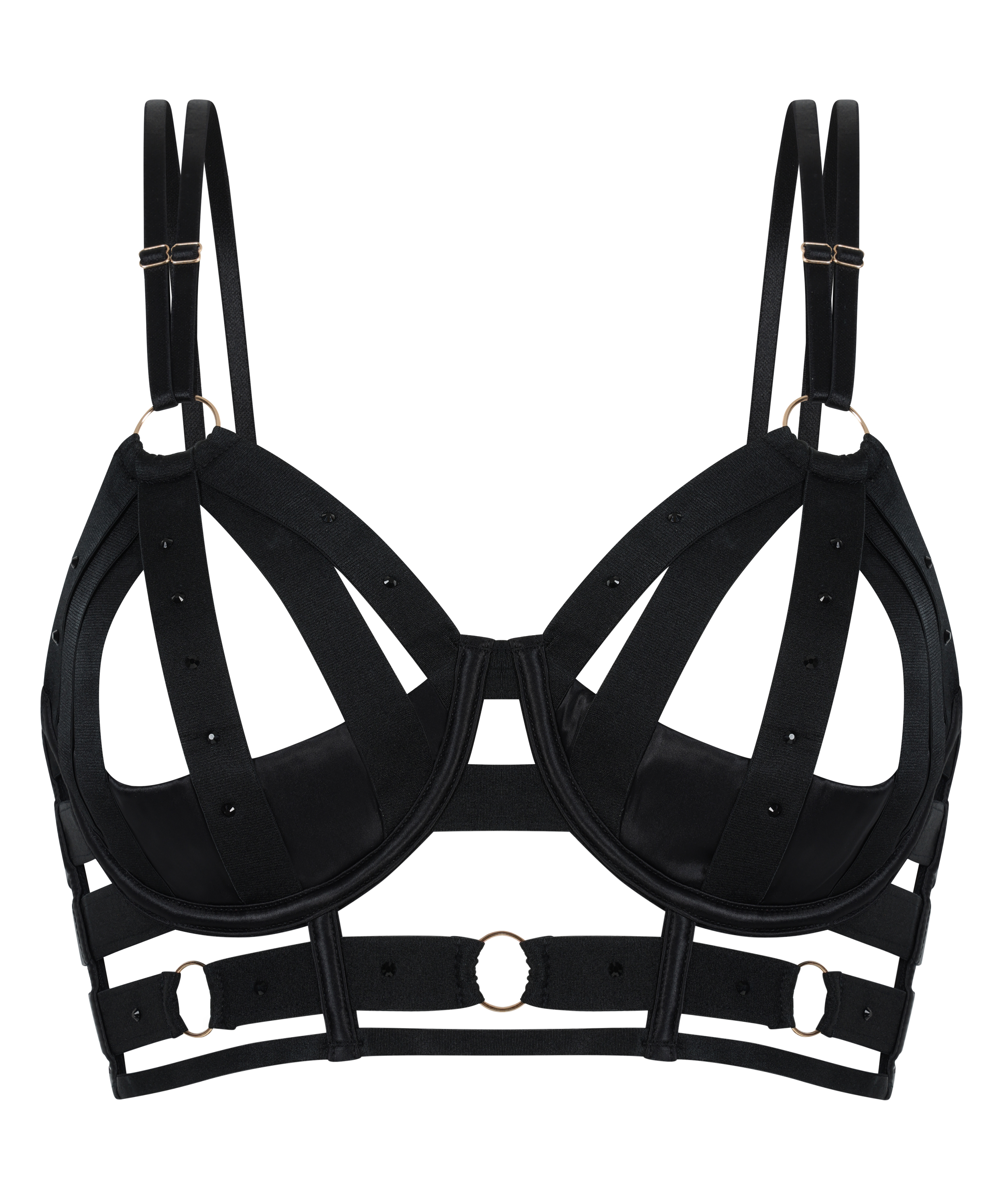 Skru opp tiltrekningskraften med denne stroppete bh-en som har et unikt harnesdesign, og gir din undertøyskolleksjon en rå kant.