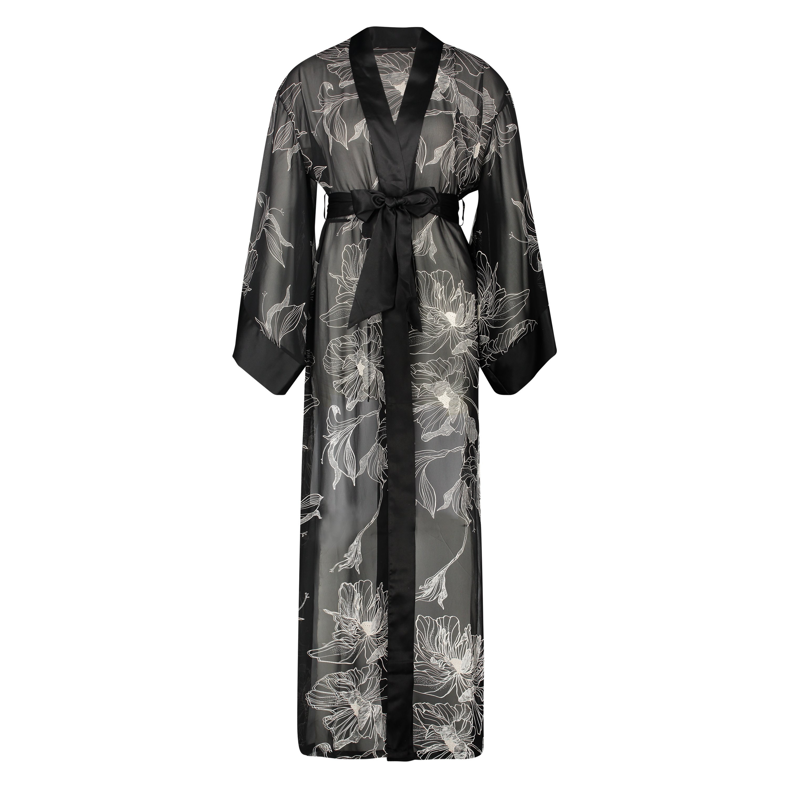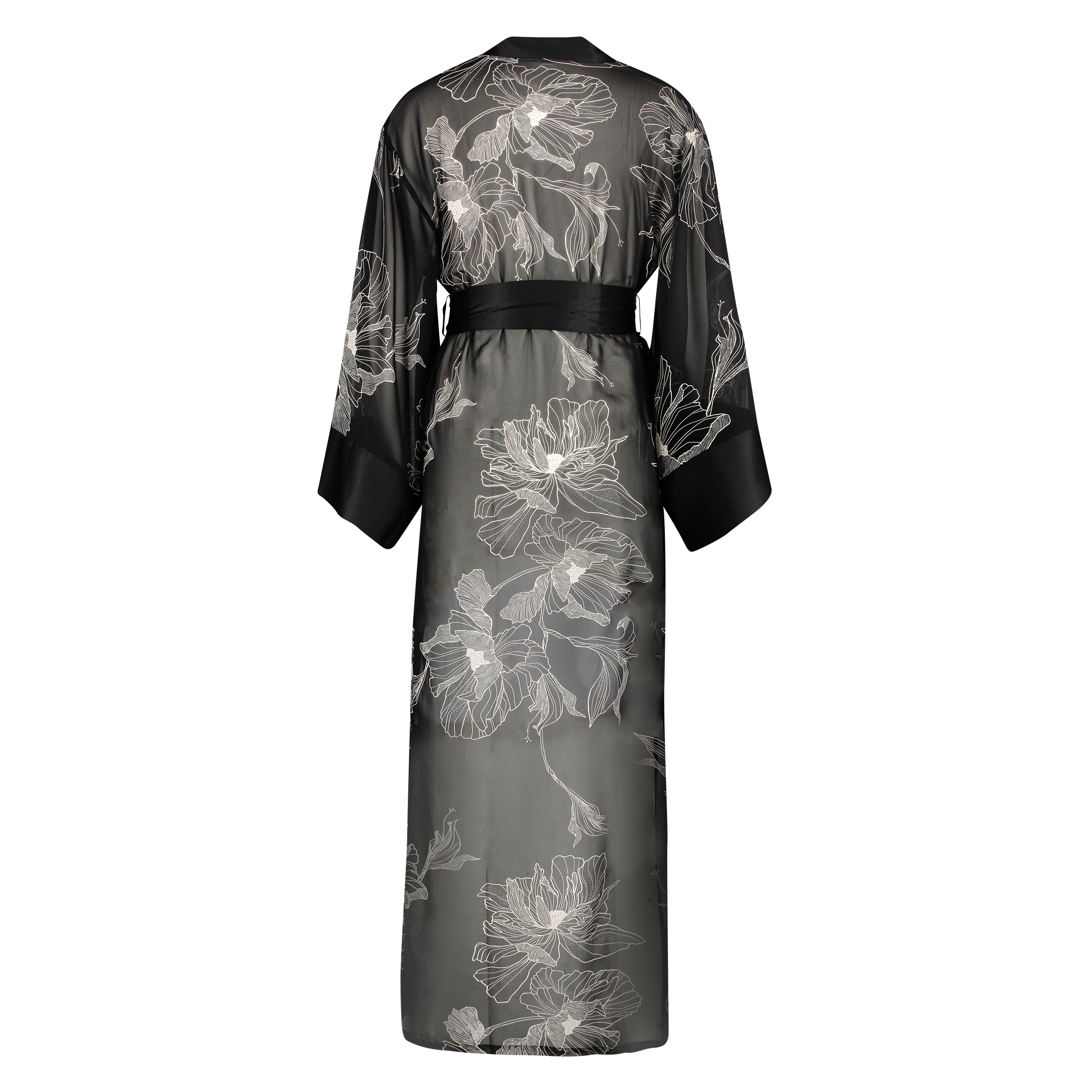 Føl deg feminin i denne praktfulle kimonoen! Kimonoen er laget av chiffon, noe som gjør at den faller mykt rundt kroppen. Den er semi-transparent og er forsynt med et lotustrykk. Kombiner med matchende artikler og du har et komplett sett!