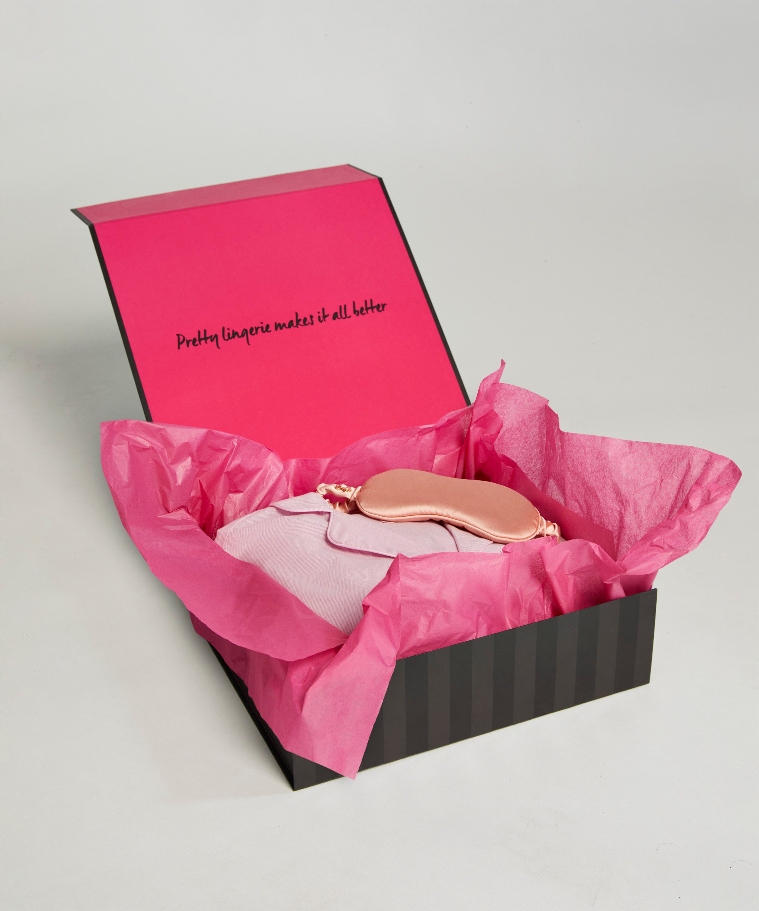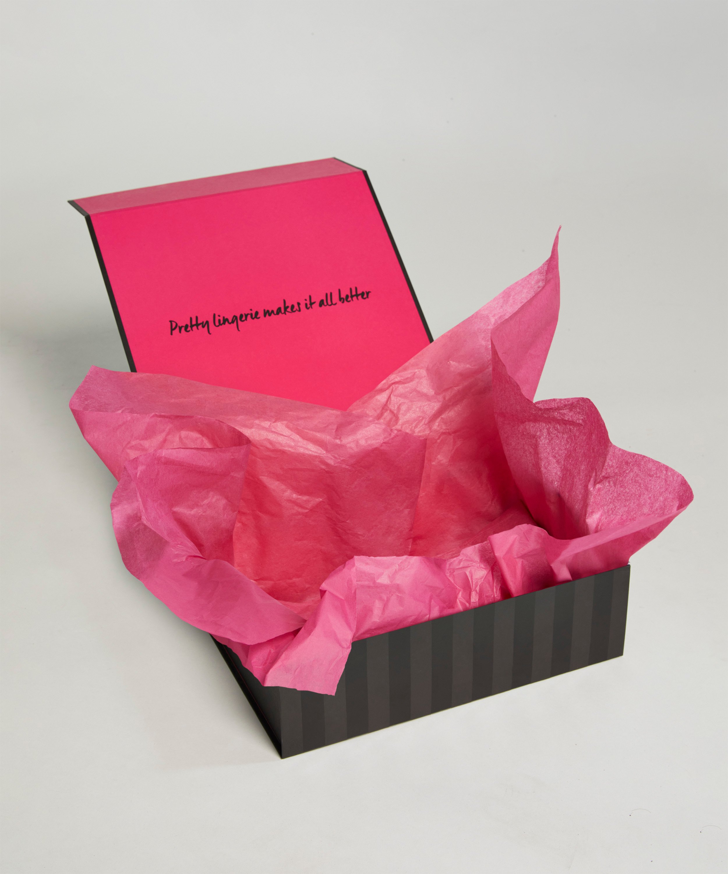 Du gjør alltid suksess når du legger gaven i en luksusgaveboks fra Hunkemöller som en oppmerksomhet til din kjære. Gaveboksen lukkes med en magnetisk stripe. Målinger 28x28x8.