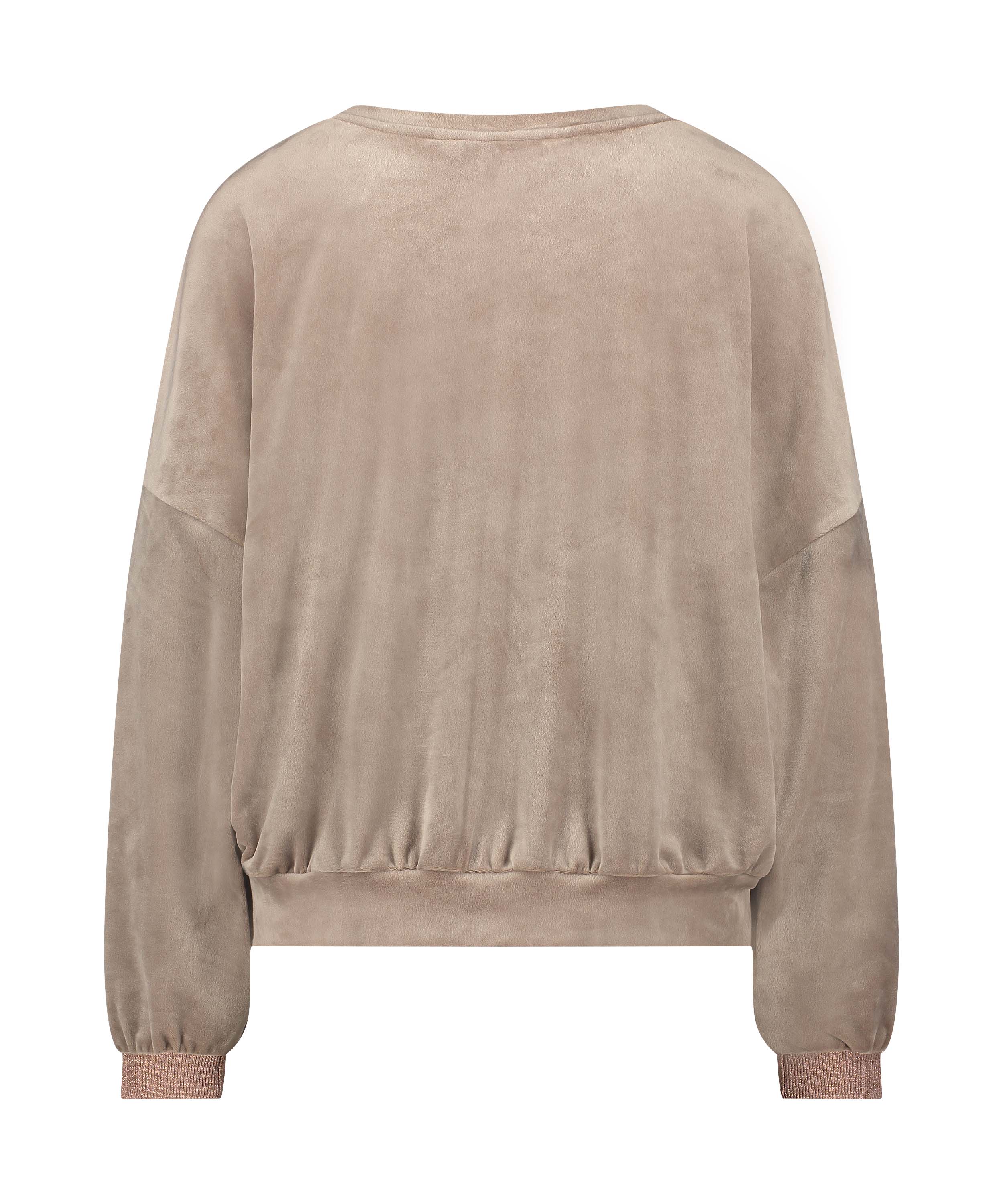 Gjør det ekstra behagelig for deg selv i denne toppen! Toppen er laget av et velurstoff som gjør den ekstra myk, og ved ermene har den en skinnende lurex-detalj. Kombiner med den matchende buksen og du har et vakkert sett!