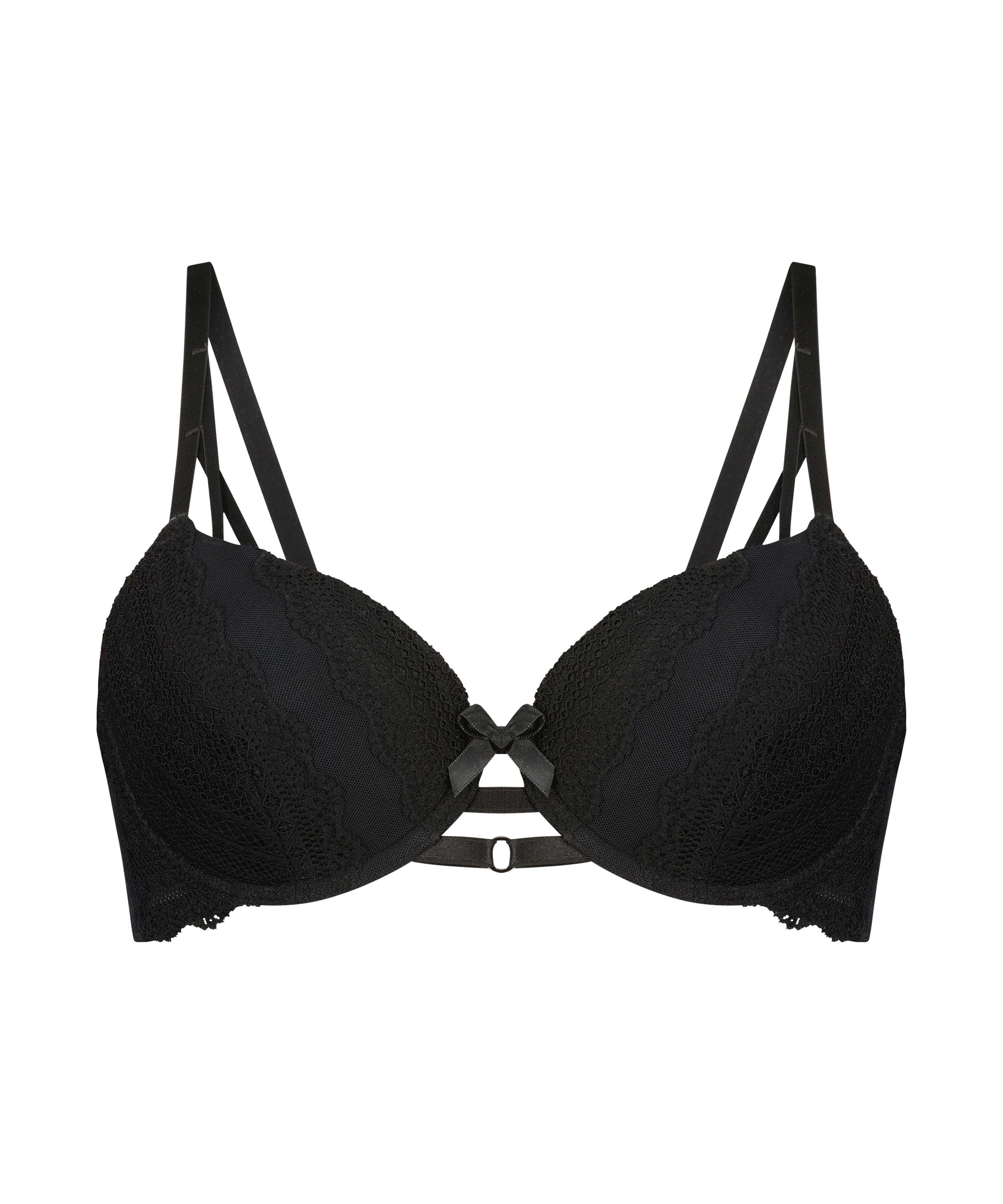 Denne BH-en bare må du ha i garderoben! Den har blonder og en søt sløyfe mellom skålene. Kombiner med matchende deler og få en gjennomført stil!