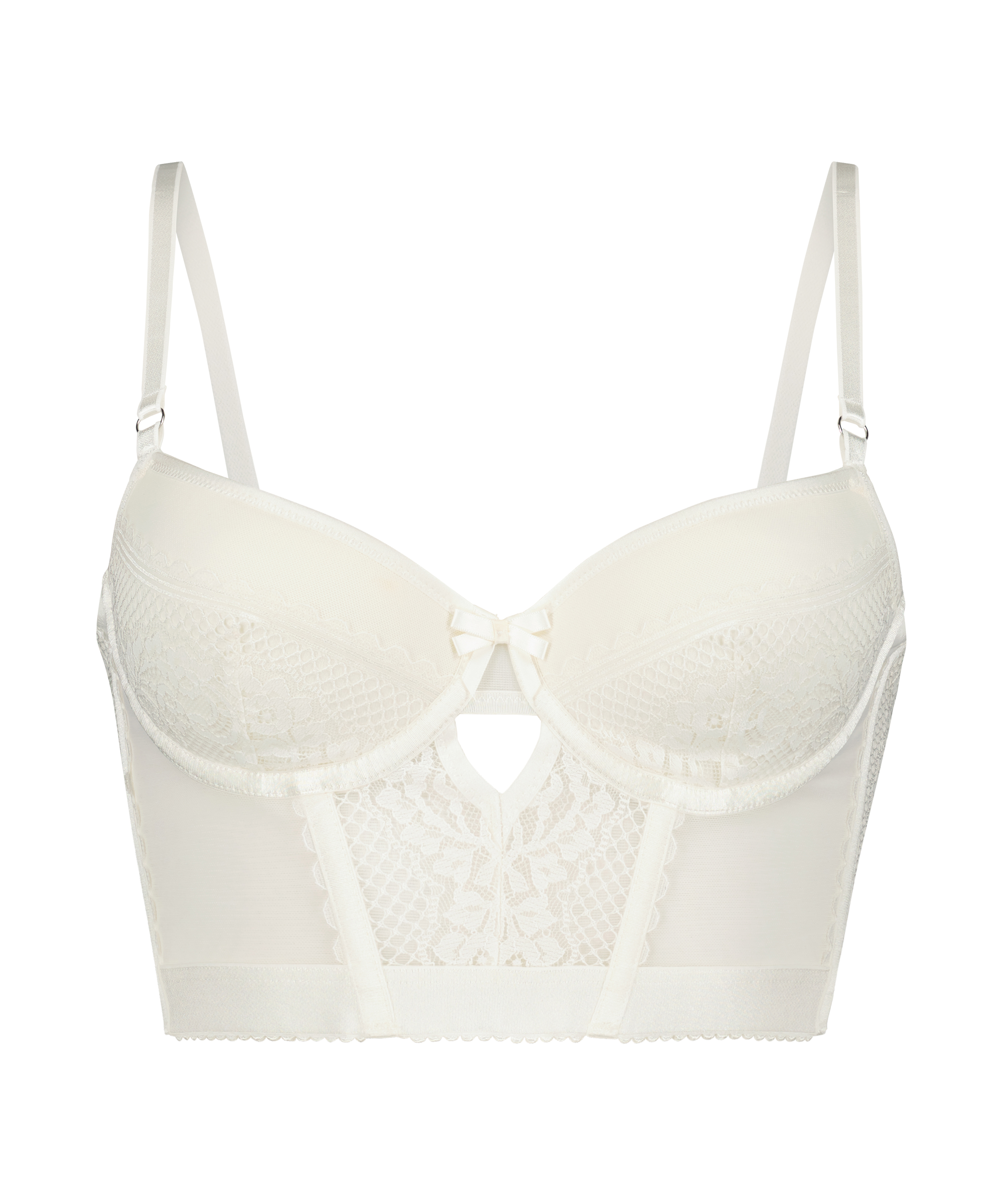 Føl deg sexy i denne praktfulle BH-en! BH-en sitter perfekt på kroppen din på grunn av longline-modellen, og detaljene i blonder og mesh gir den en chic look. BH-en er utstyrt med en sløyfe foran. Kombiner med den matchende trusen og du tar deg flott ut!